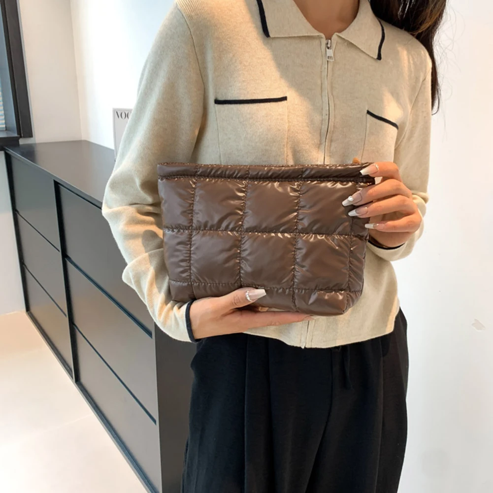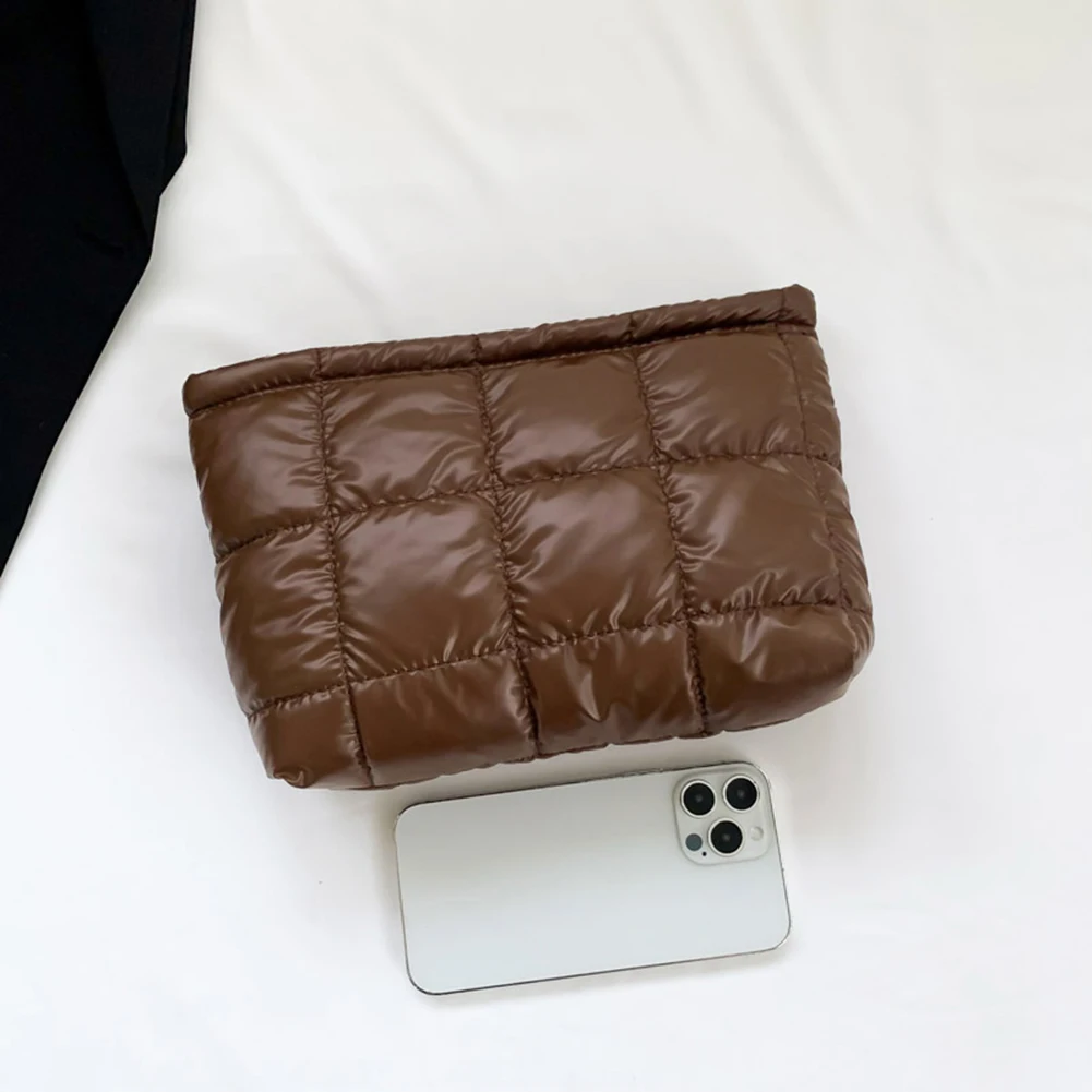 여성 화장품 파우치 패딩 퀼트 메이크업 보관 가방 대용량 메이크업 주최자 가방 단색 여행 화장품 가방