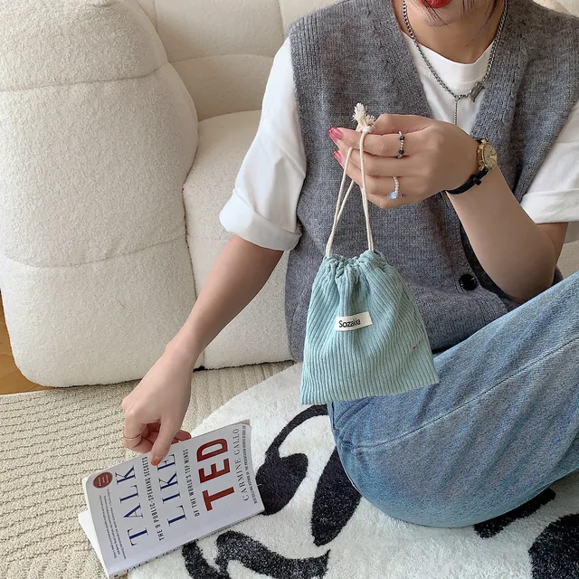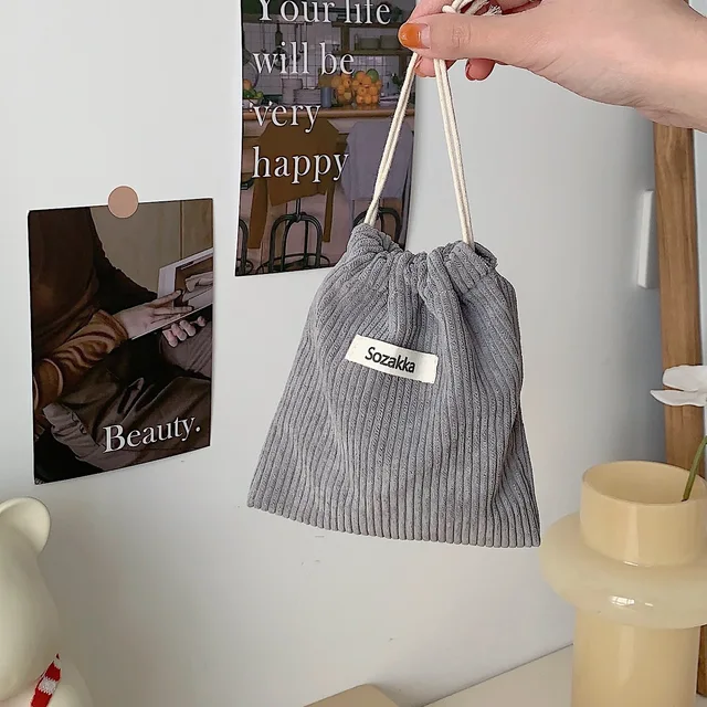 패드파우치 솔리드 컬러 코듀로이 드로스트링 화장품 가방 1 개 선물 패키지 보관 립스틱 사탕 정리 파우치