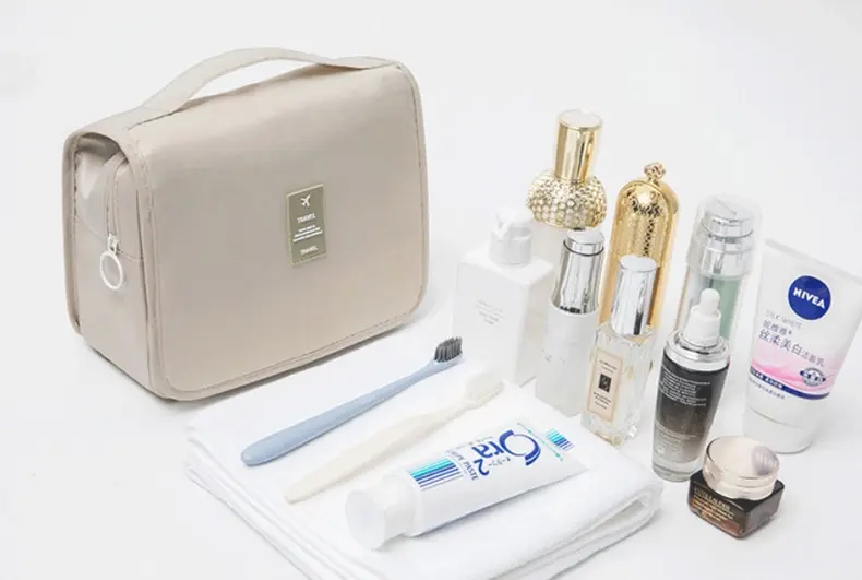 ? 방수 소재:방수 나일론 소재로 제작된 이 메이크업 백은 여행 중 화장품을 안전하고 건조하게 유지합니다.
