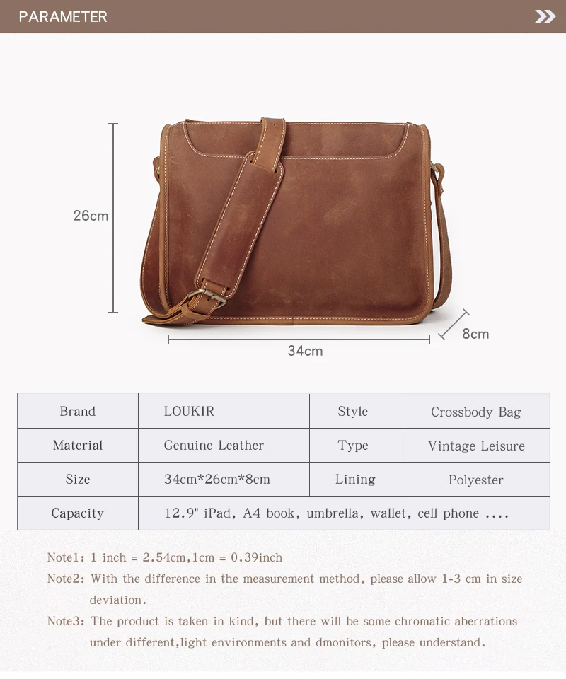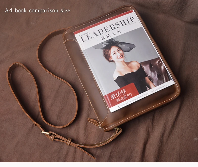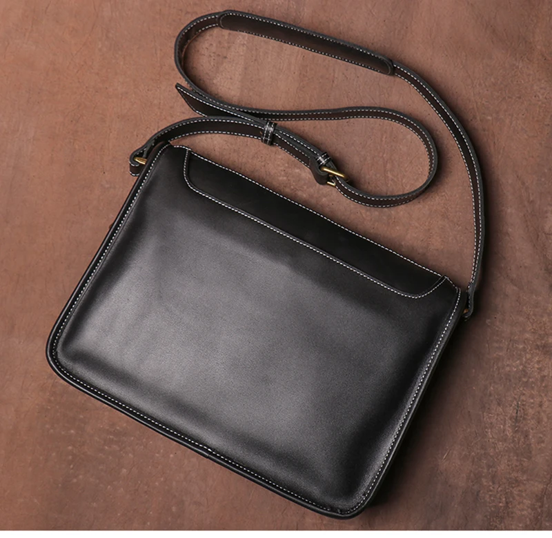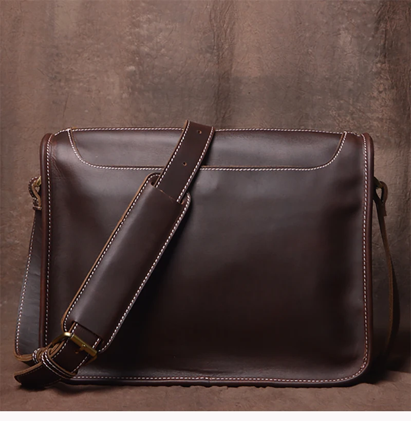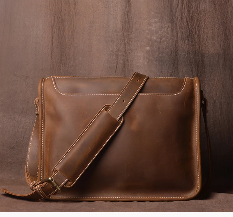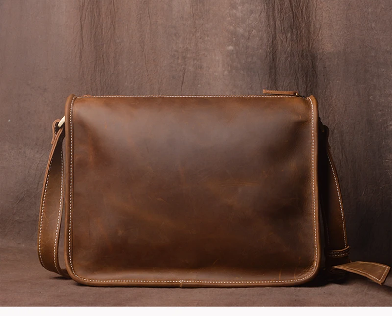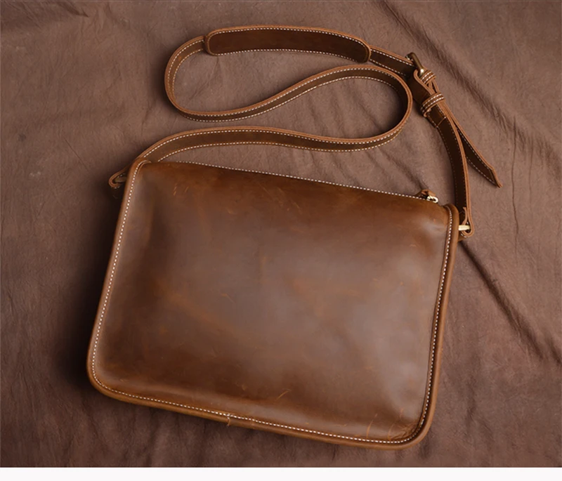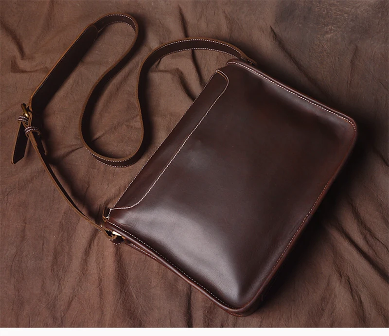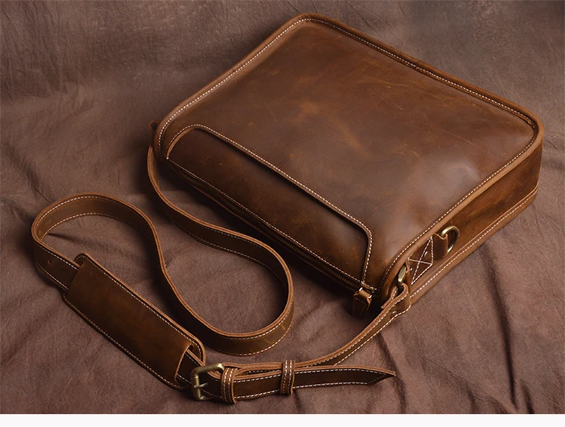 패드파우치 Luosir-남성용 빈티지 크레이지 호스 소가죽 크로스 바디 백 심플 캐주얼 가죽 숄더 메신저 12.