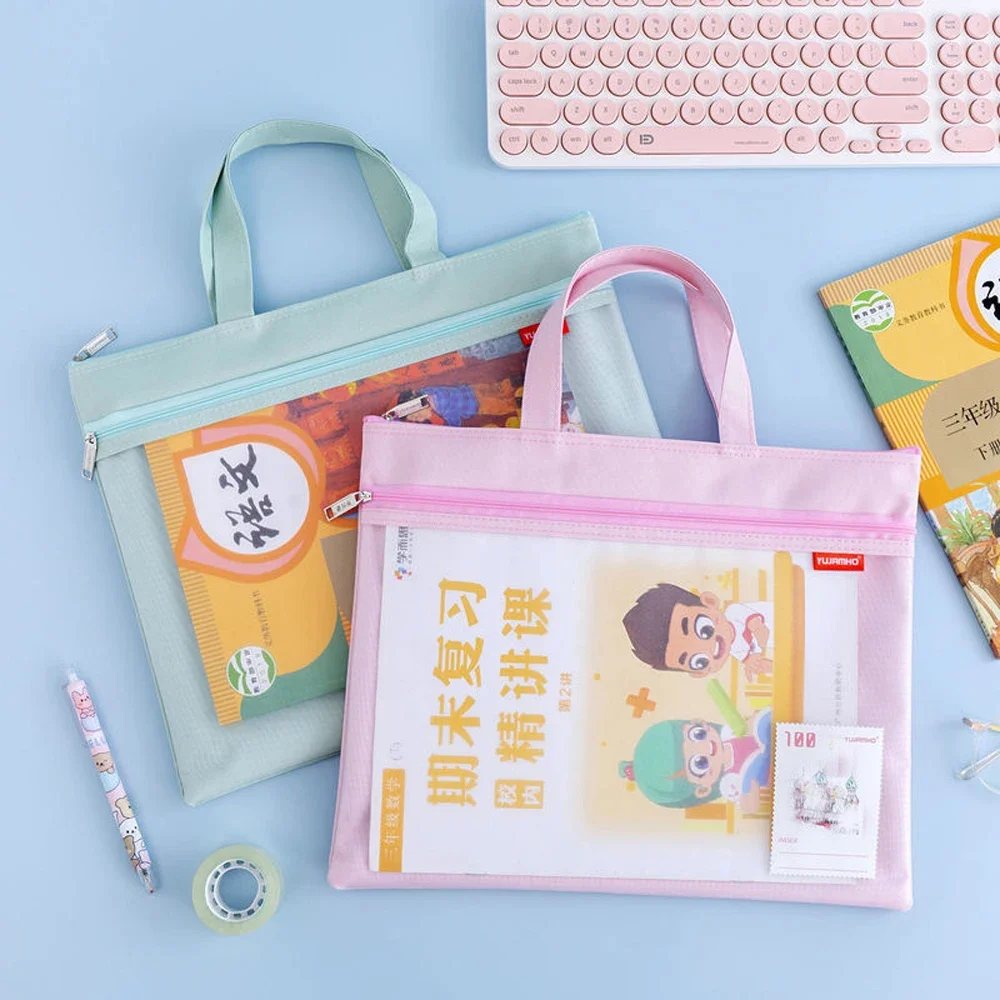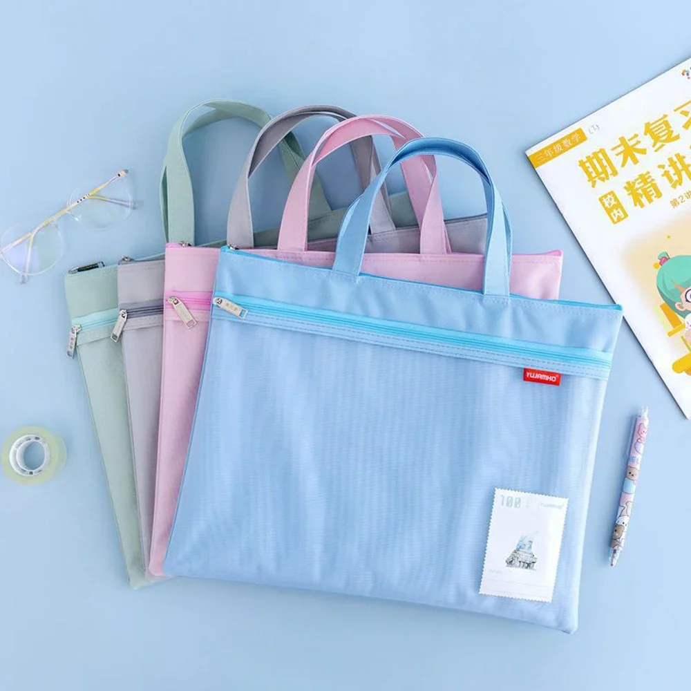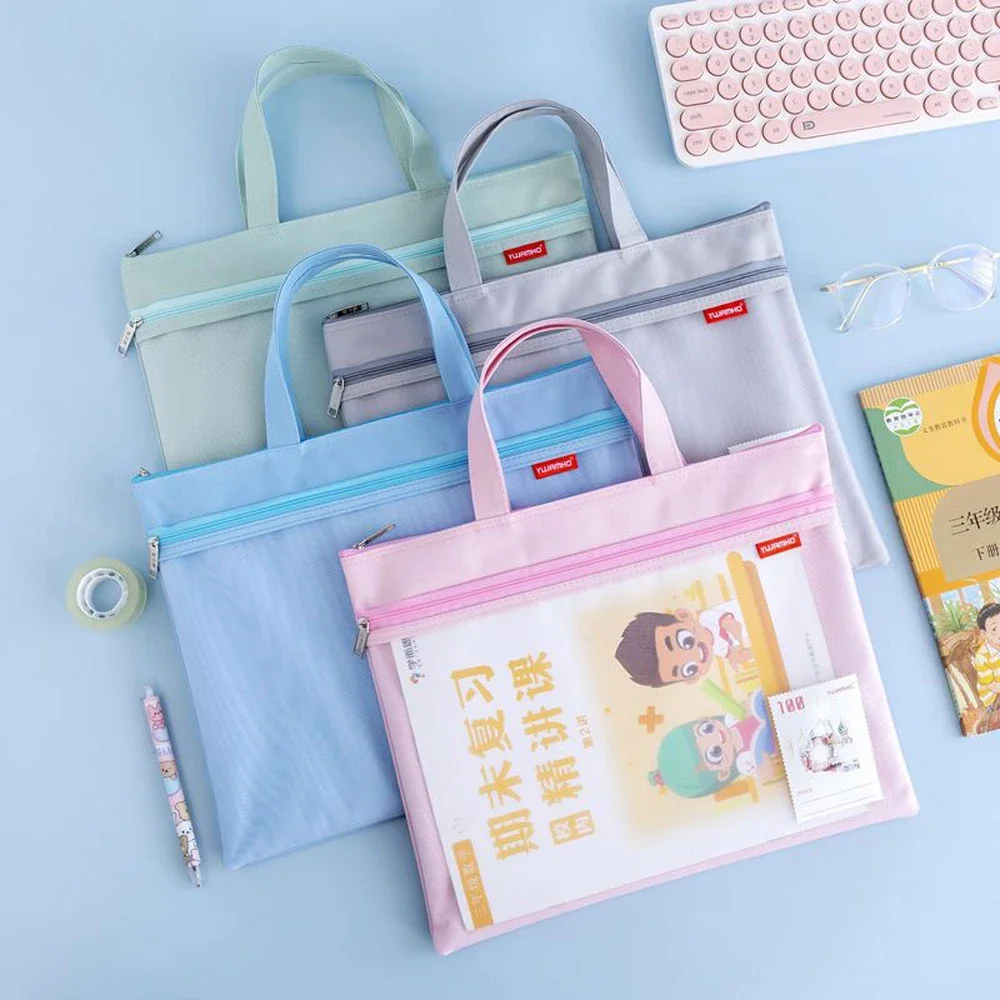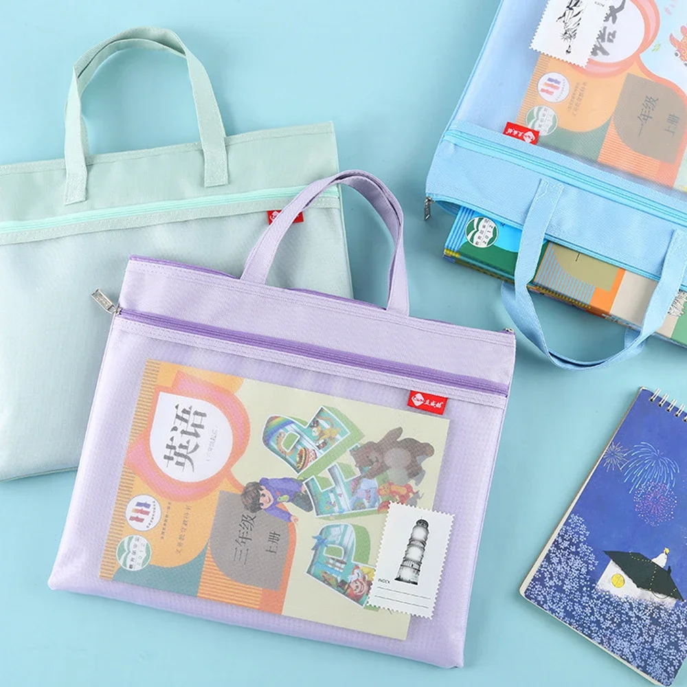 메쉬 지퍼 파우치 더블 포켓 방수 방진 파일 가방 학교 여행 사무실 11.3x13.8 에 대한 핸들 문서 저장