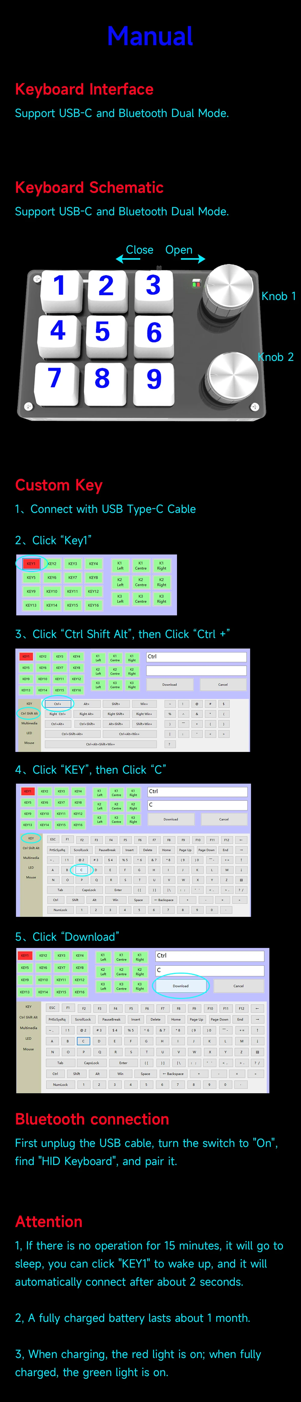 프로그래밍 매크로 키패드 사용자 정의 노브 키보드 복사 붙여 넣기 미니 버튼 Photoshop 게임 키패드 기계식 핫스왑 매크로 패드