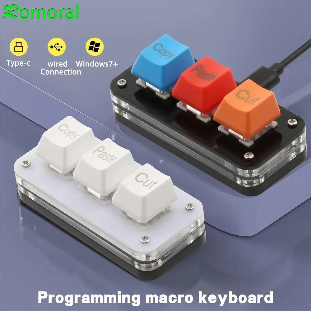 매크로키보드 Romoral 매크로 프로그래밍 키보드 RGB 포토샵 게임용 핫스왑 키패드 복사 붙여넣기 미니 단