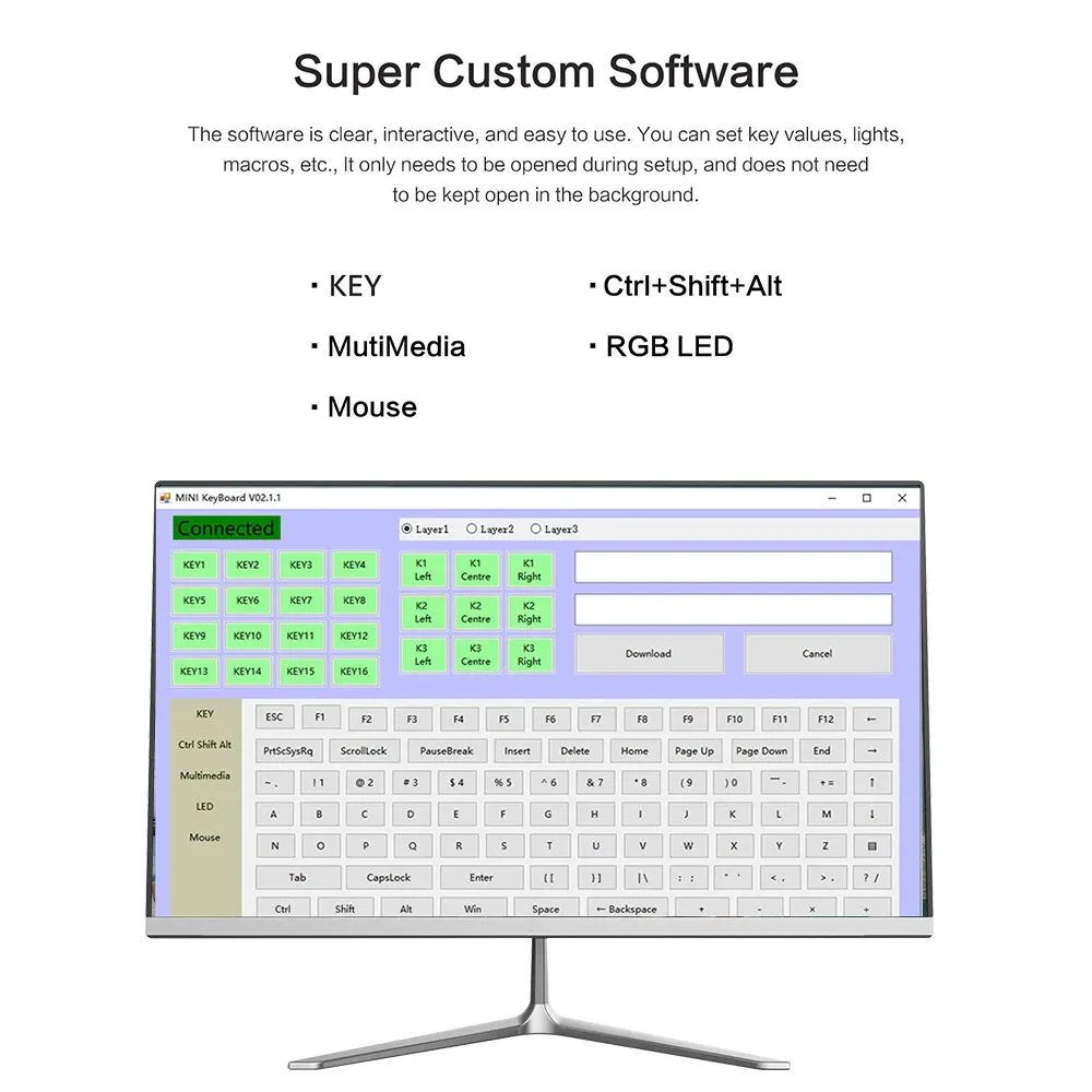 ▶Mac을 사용하기 전에 키보드를 WINS 컴퓨터에 연결하고 웹 페이지 링크 "https://drive.google.com/file/d/1Bh30-KSMVcpfAg3jJF7SRveXHVorS3A0/view?usp=sharing" (지침 포함) 를 열고 세 버튼의 설정을 수동으로 구성해야합니다. 왼쪽 버튼 = GUI (win)+ C, 중간 버튼 = GUI (win)+ V, 오른쪽 버튼 = GUI (win)+ X.