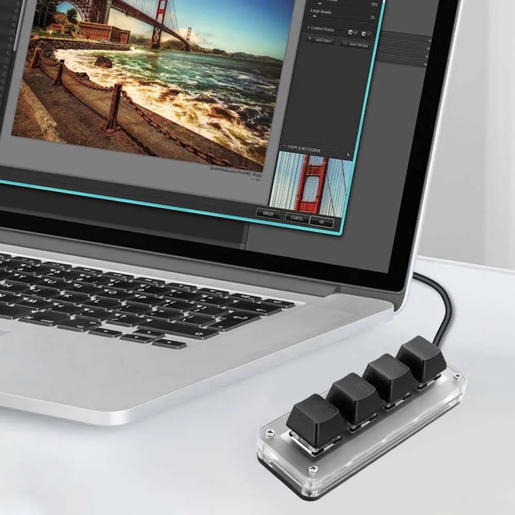 레드 스위치 RGB 매크로 사용자 정의 게임용 키보드 노브 3 키 + 1 노브/4 키 프로그래밍 가능 핫스왑 PS 드로잉 용 한손 기계식 키패드