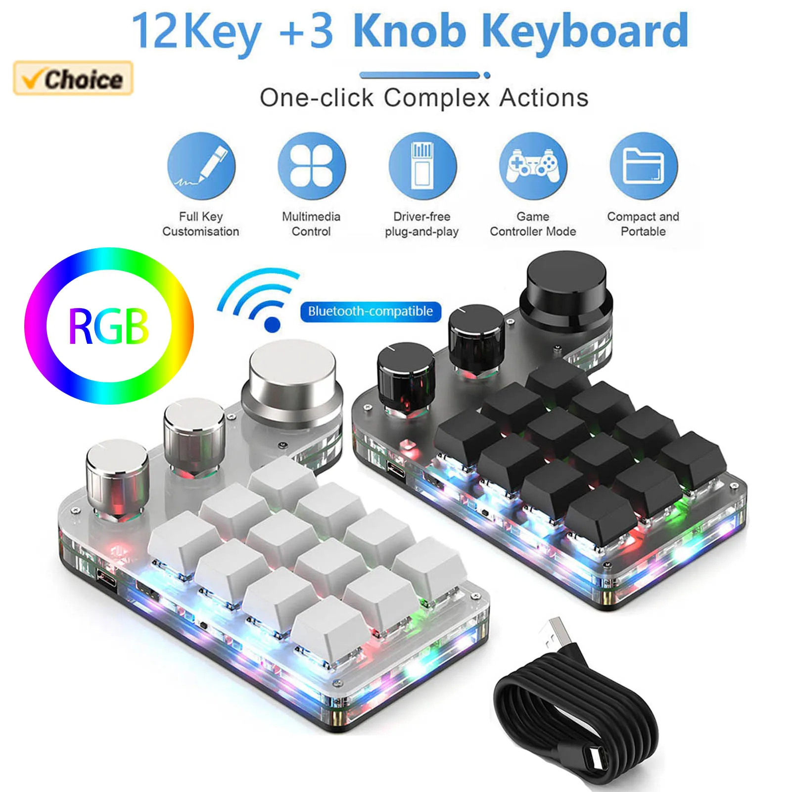 프로그래밍 가능한 사용자 정의 12/3 키 노브 블루투스 호환/USB 유선 사용자 정의 키보드 핫스왑 바로 가기 키 PC 맥북 노트북