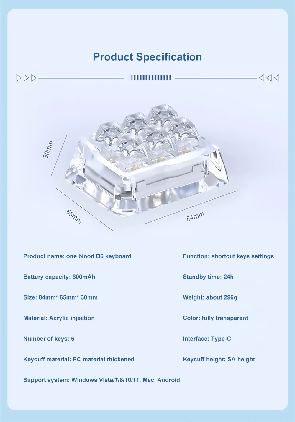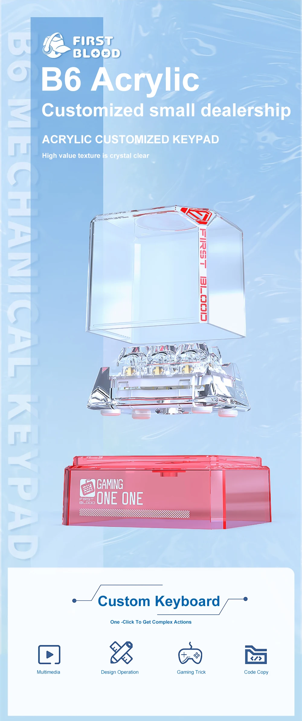 Type-c 사용자 정의 키보드 매크로 6Key 프로그래밍 RGB 블루투스 게임 포토샵 핫스왑 미니 기계식 BT 키보드 FirstBlood B6