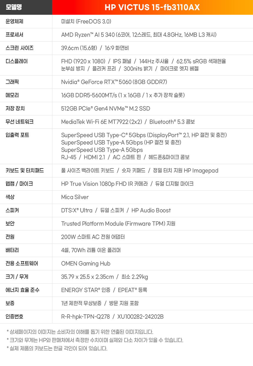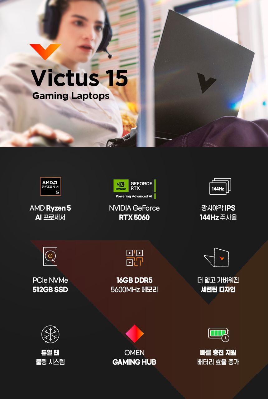 HP VICTUS 15-fb3110AX R5-340/16GB/512GB/RTX5060/FHD_300nit_144Hz/FDS