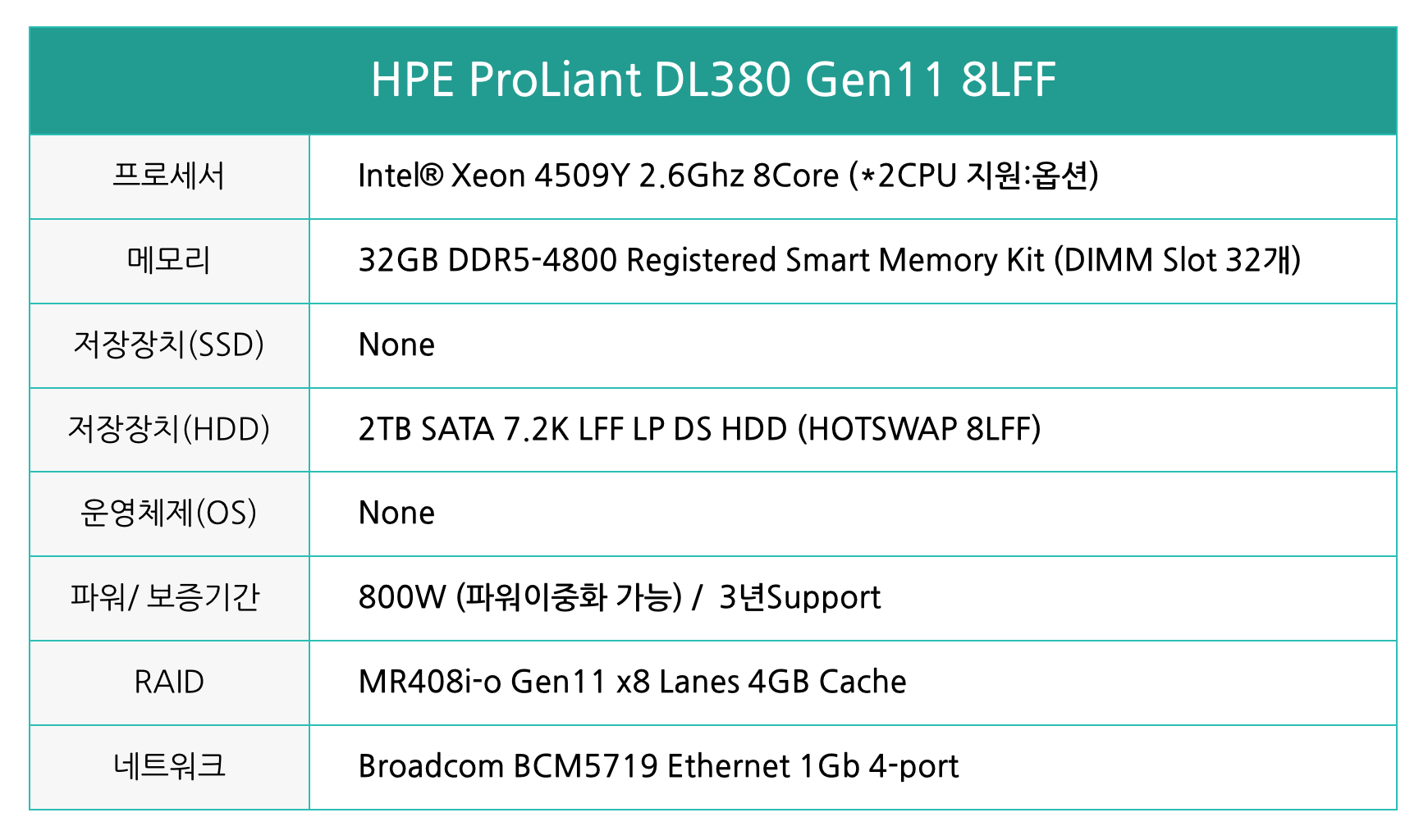 에이치피이 DL380 G11 8LFF 4509Y 2.6G 32GB 2TB