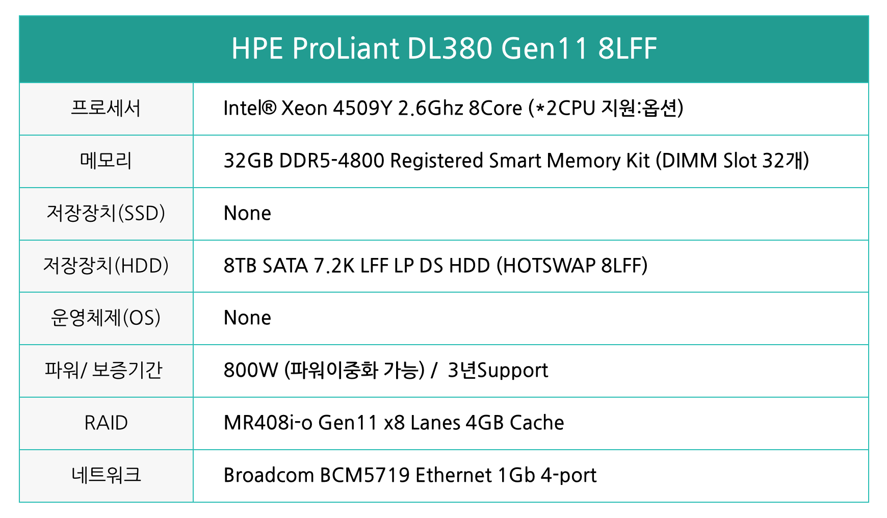 에이치피이 DL380 G11 8LFF 4509Y 2.6G 32GB 8TB