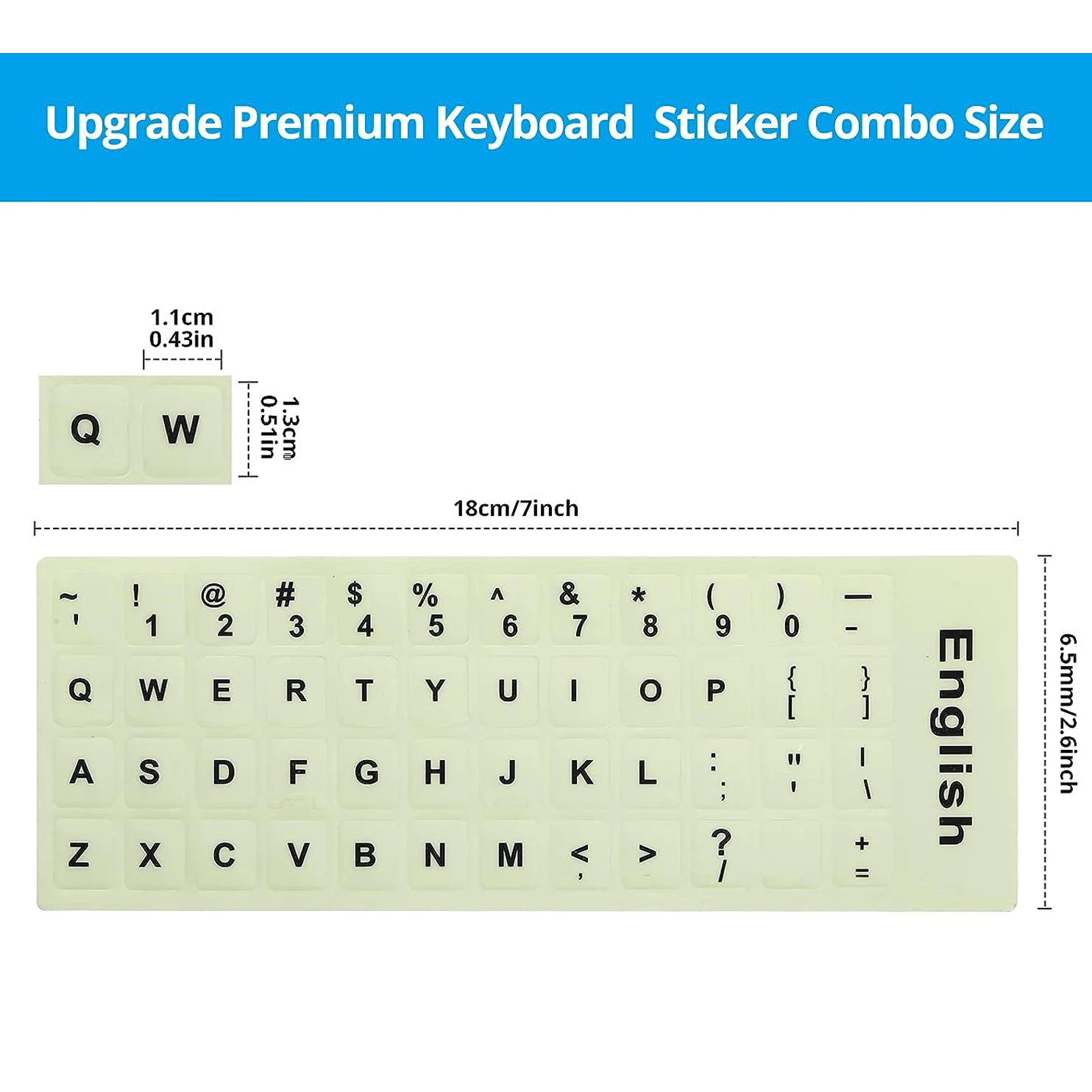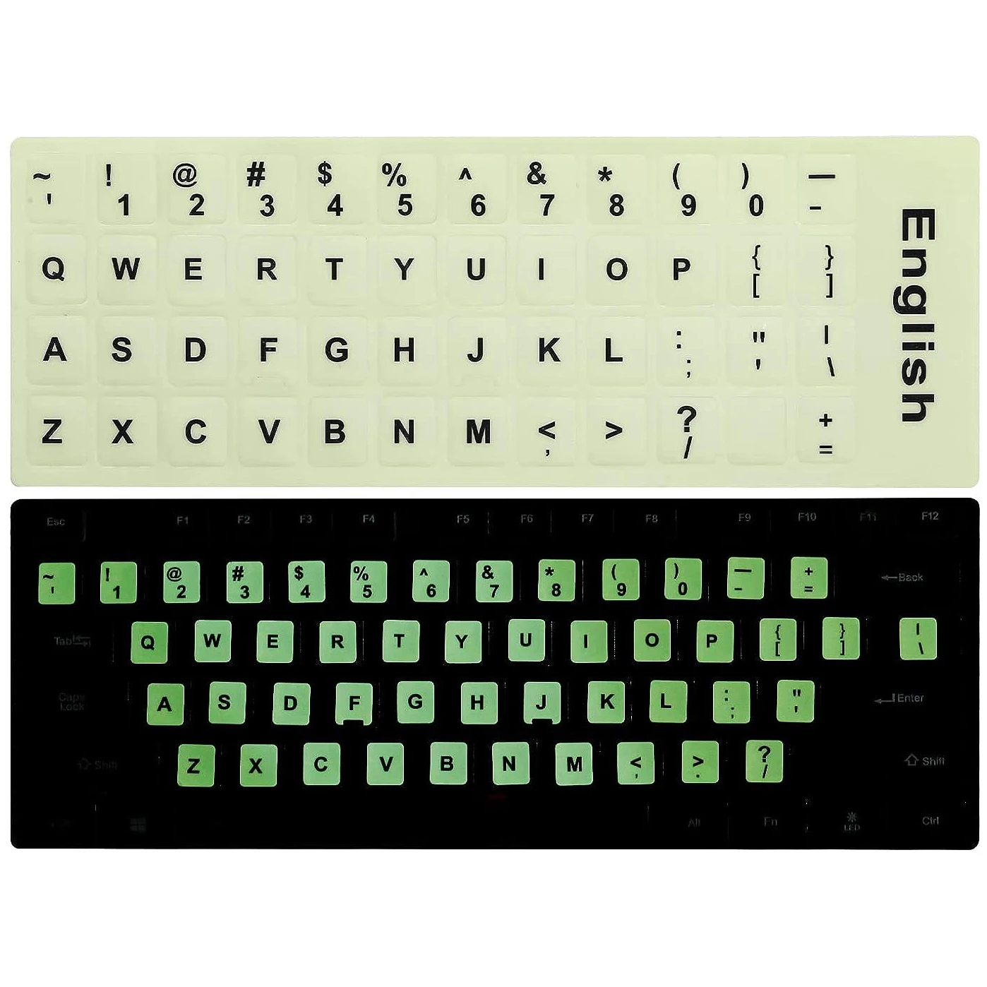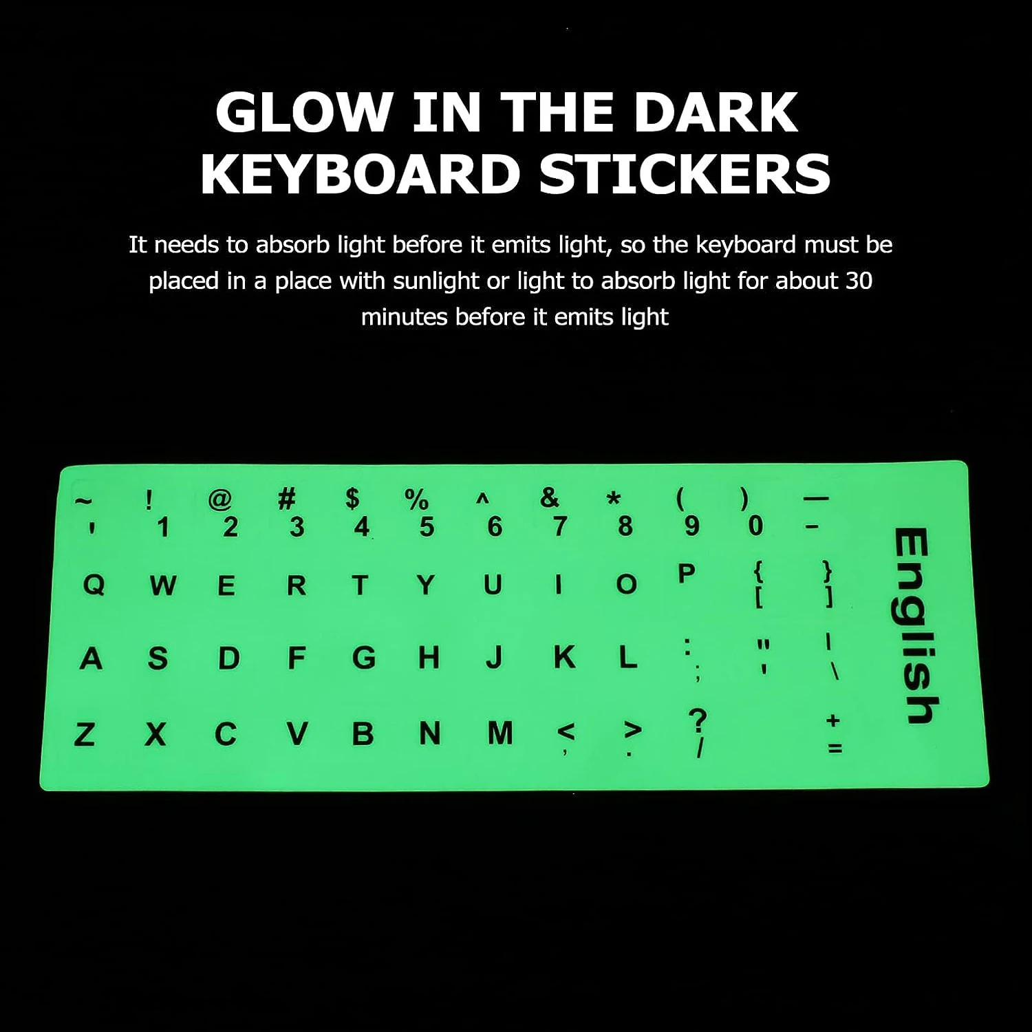 친절한 알림:영어 키보드 스티커 노트북은 빛이 빛나기 전에 약 3 분 동안 햇볕이 잘 드는 곳에 두어 빛을 흡수해야합니다. 낮에는 항상 어두운 곳에서 보관하면 일반 스티커와 같은 효과가 있습니다.