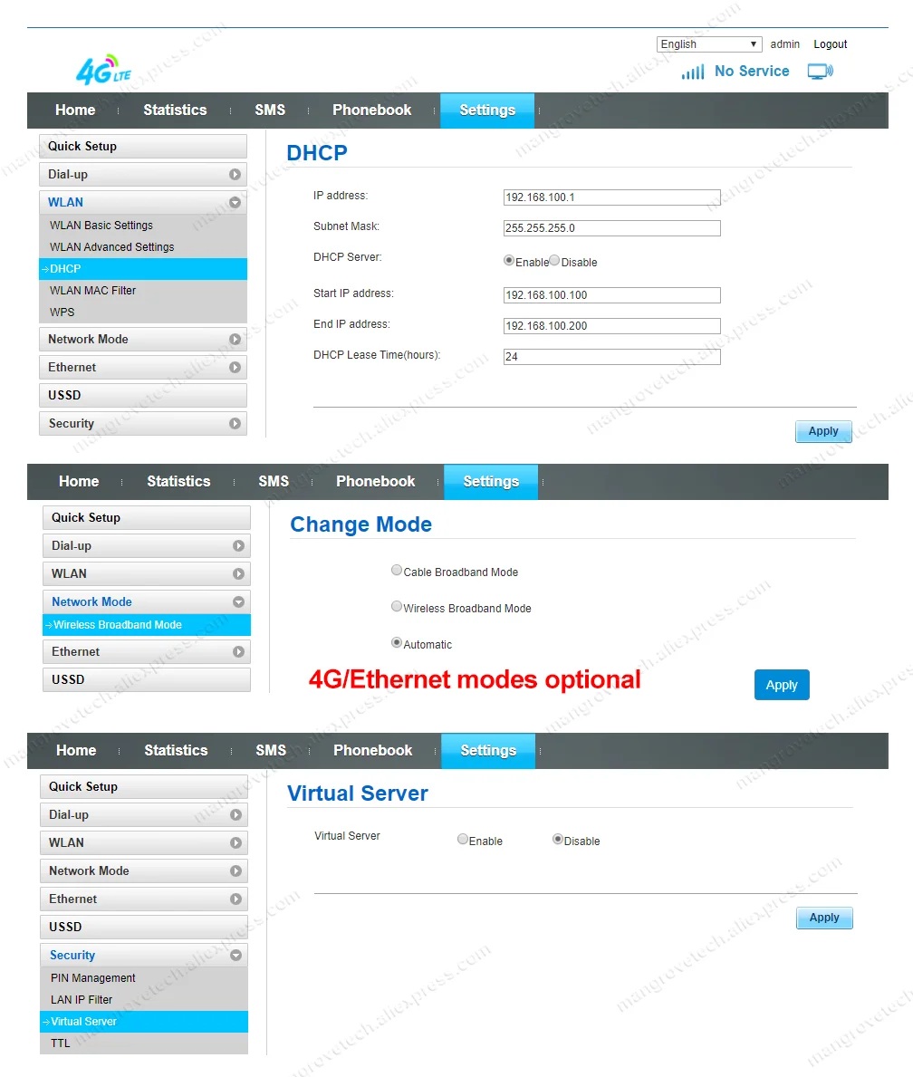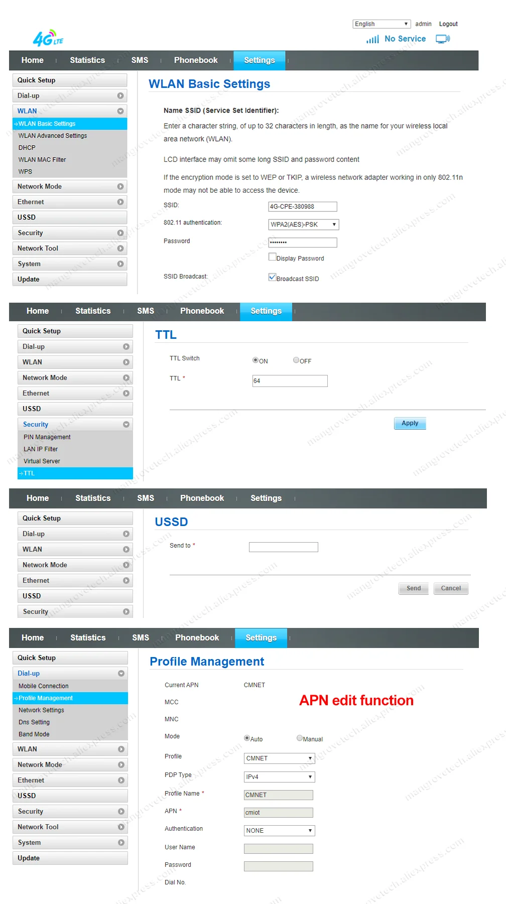 우리의 라우터 소프트웨어는 다기능이며 USSD,TTL,DHCP, 가상 서버, IMEI 변경, APN 편집, 4G/이더넷 스위치 기능 및 다국어. 라우터를 다용도로 편리하게 사용할 수 있습니다.