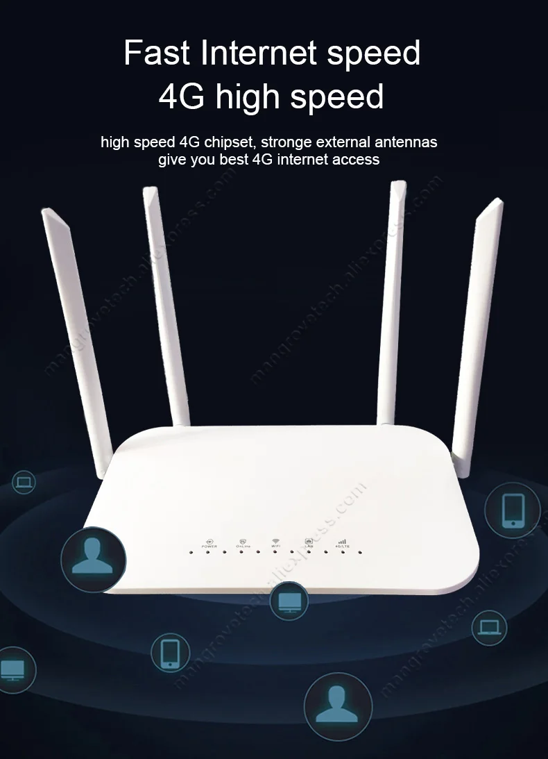 1. 4G 라우터는 범용 일반 SIM 카드 만 지원합니다. 일부 잠긴 SIM 카드의 경우 운영자가 Wi-Fi 라우터에서 작업 할 수 없거나 승인 된 장치에서만 작업 할 수있는 SIM 카드를 계약하십시오. 이 제품은 작동하지 않습니다. 로컬 4G 네트워크에 연결되어 있지만 인터넷 서비스를 사용할 수 없습니다. (SIM 카드가 인터넷에 액세스 할 수없는 경우 pls는 당황하지 마십시오. 일반적으로 다른 운영자의 범용 SIM 카드를 변경하면 작동합니다. 또는 저희에게 도움을 요청할 수 있습니다.)