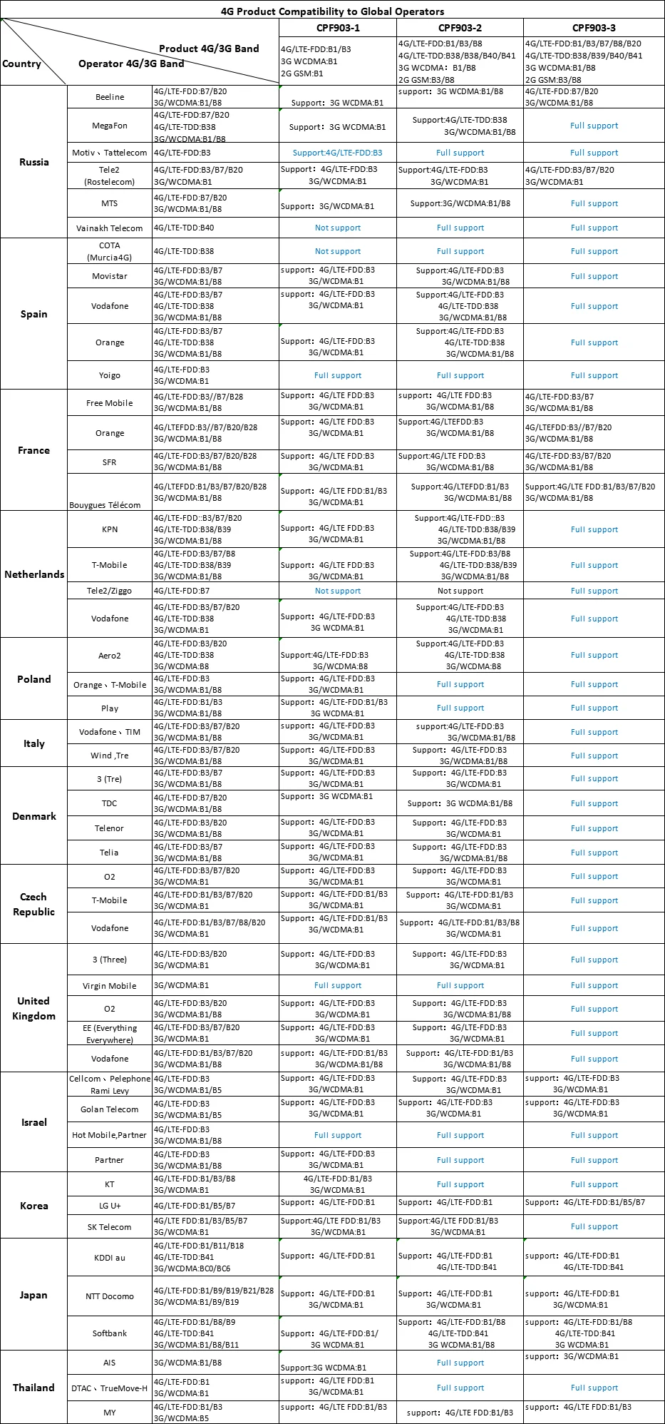 4G LTE FDD:B1/B3/B8(2100/1800/900MHZ)