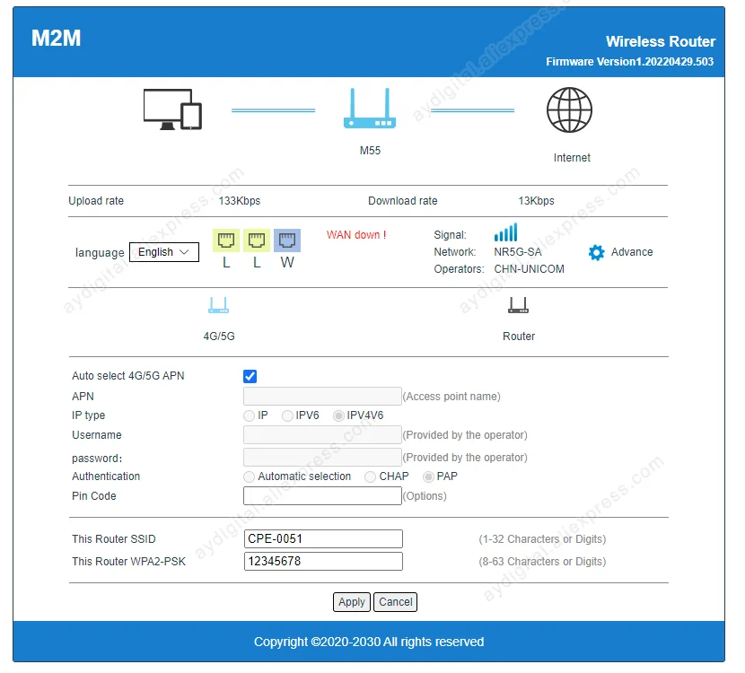 1. 4G 라우터는 범용 일반 SIM 카드 만 지원합니다. 일부 잠긴 SIM 카드의 경우 운영자가 Wi-Fi 라우터에서 작업 할 수 없거나 승인 된 장치에서만 작업 할 수있는 SIM 카드를 계약하십시오. 이 제품은 작동하지 않습니다. 로컬 4G 네트워크에 연결되어 있지만 인터넷 서비스를 사용할 수 없습니다. (SIM 카드가 인터넷에 액세스 할 수없는 경우 pls는 당황하지 마십시오. 일반적으로 다른 운영자의 범용 SIM 카드를 변경하면 작동합니다. 또는 저희에게 도움을 요청할 수 있습니다.)