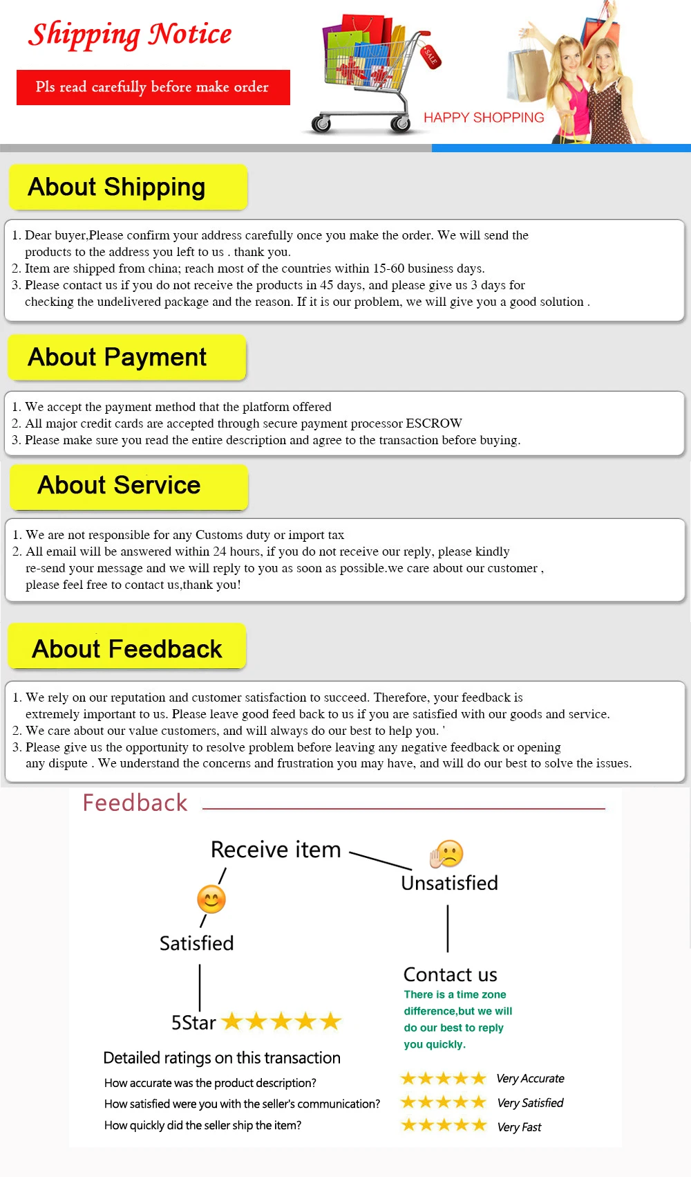 그러나 때로는 더 오래 걸리며 해당 국가의 세관 정책에 따라 다릅니다. 더 빠른 고속 배송을 사용하고 싶다면 저희에게 연락하여 준비하십시오.