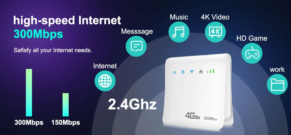 라우터의 4G 칩셋 최고 용량은 300 M이며, 4G 기지국의 이론적 최고 속도는 300 M입니다. 그러나 4G 기지국은 하나의 사용자에게 전체 300M 대역폭을 제공하는 대신 동시에 많은 4G 사용자에게 서비스를 제공하고 4G 신호 강도, SIM 카드 제한 및 환경은 네트워크 속도에도 영향을 미칩니다.
