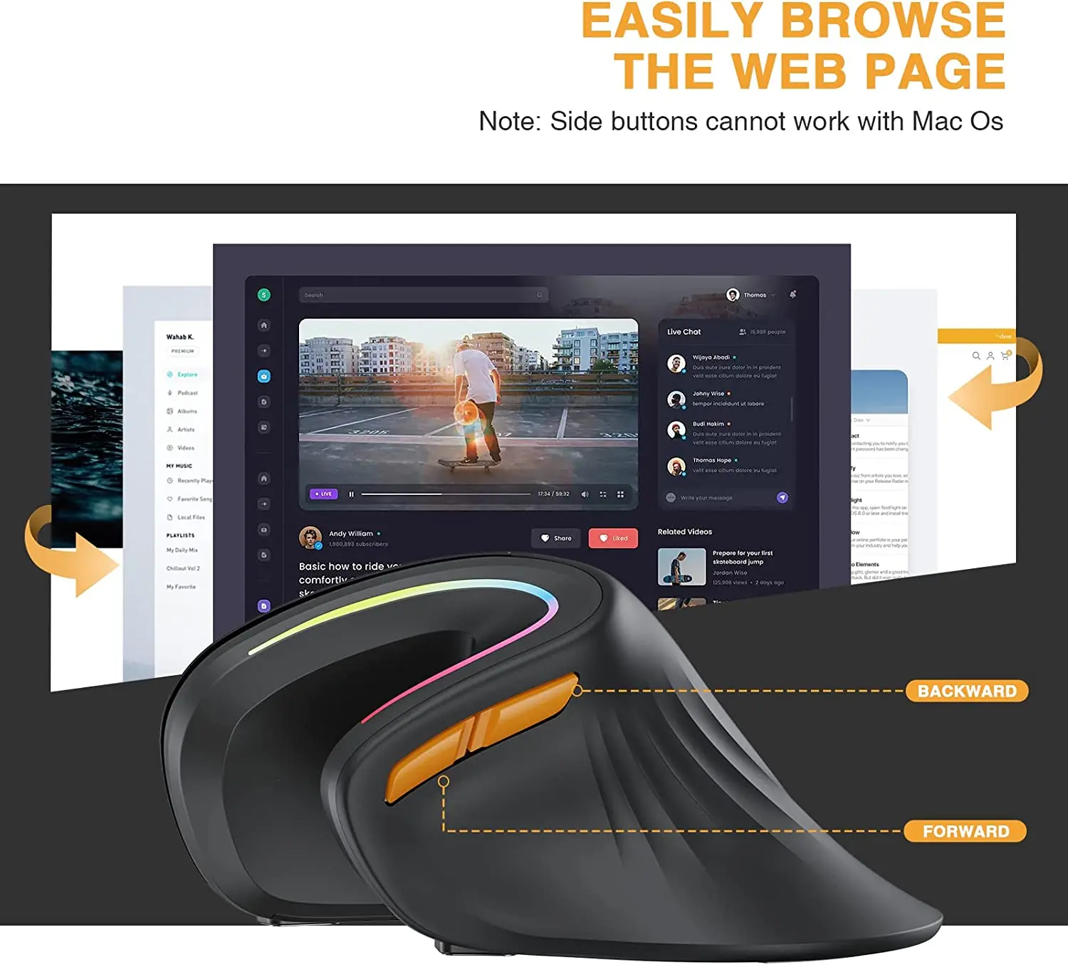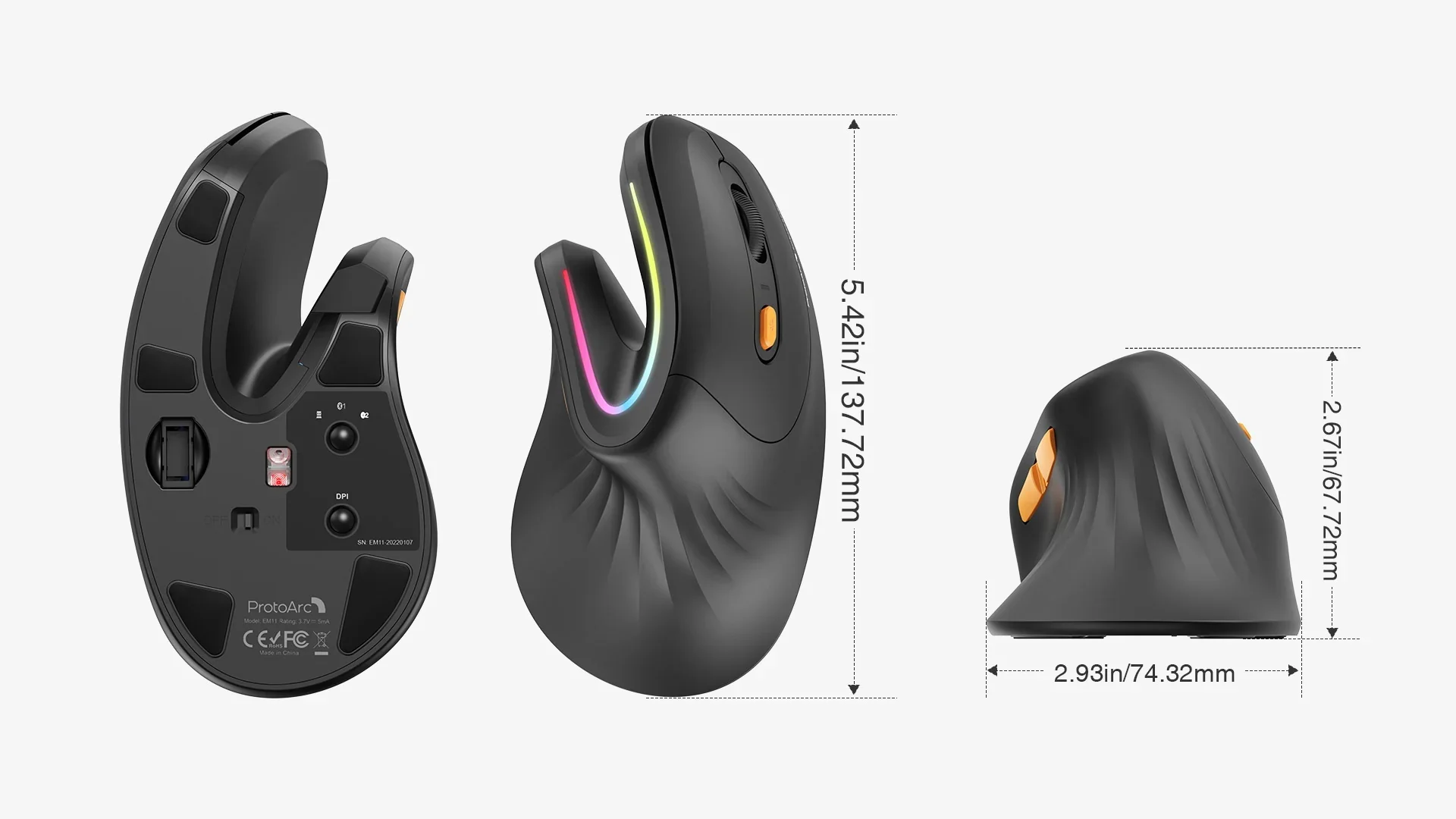 내장 930mAh 리튬 이온 배터리, 수직 마우스는 포함된 Type-C 케이블을 통해 충전됩니다.
