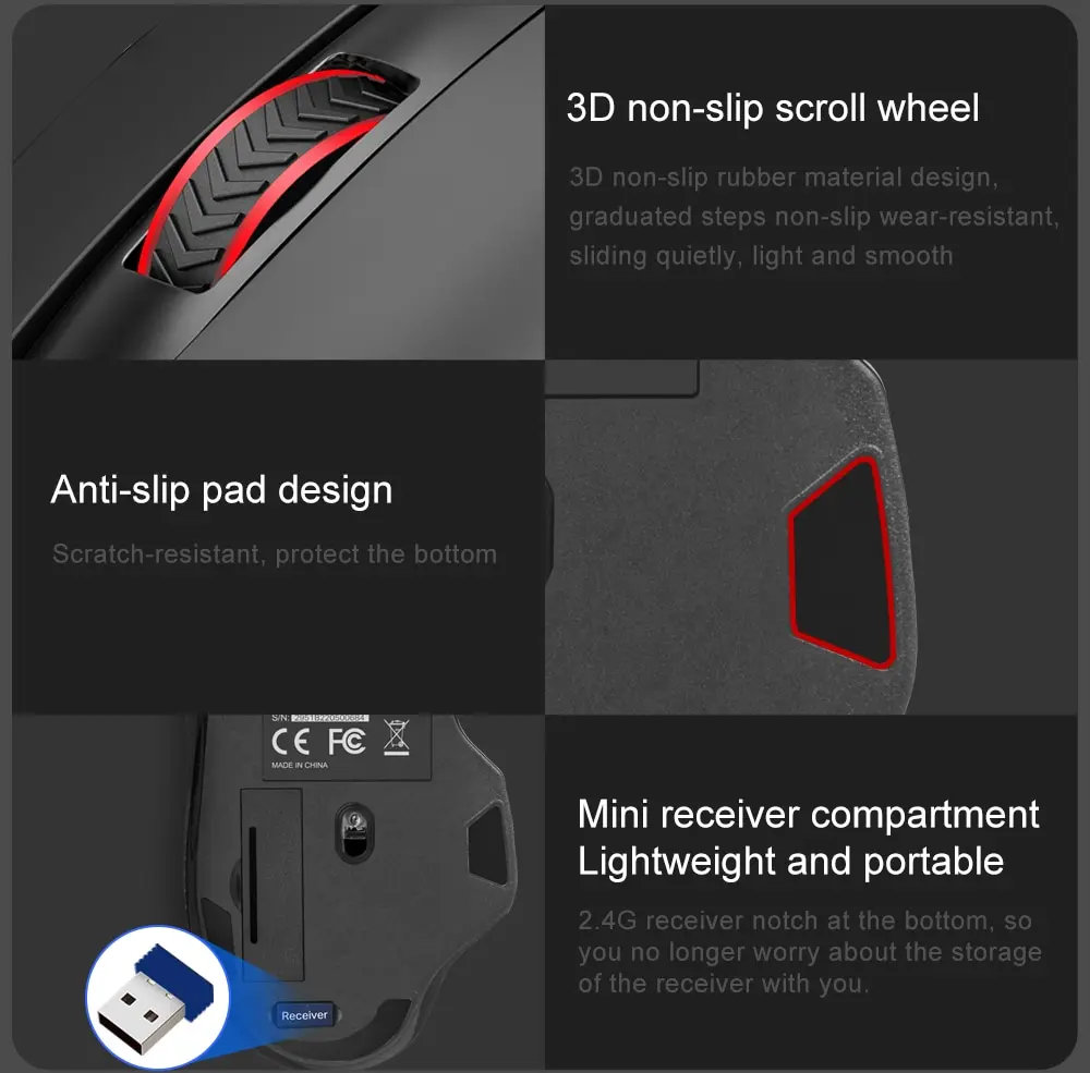 USB 플러그 앤 플레이 및 안정적인 커서: USB 나노 수신기는 마우스, 플러그 및 재생 뒷면에 저장할 수 있습니다. 2.4GHz 의 무선 기술은 안정적인 연결, 최대 33ft (10m) 의 전송 거리를 제공합니다. 지연, 간섭을 제거하고 빠른 데이터 전송을 제공했습니다.