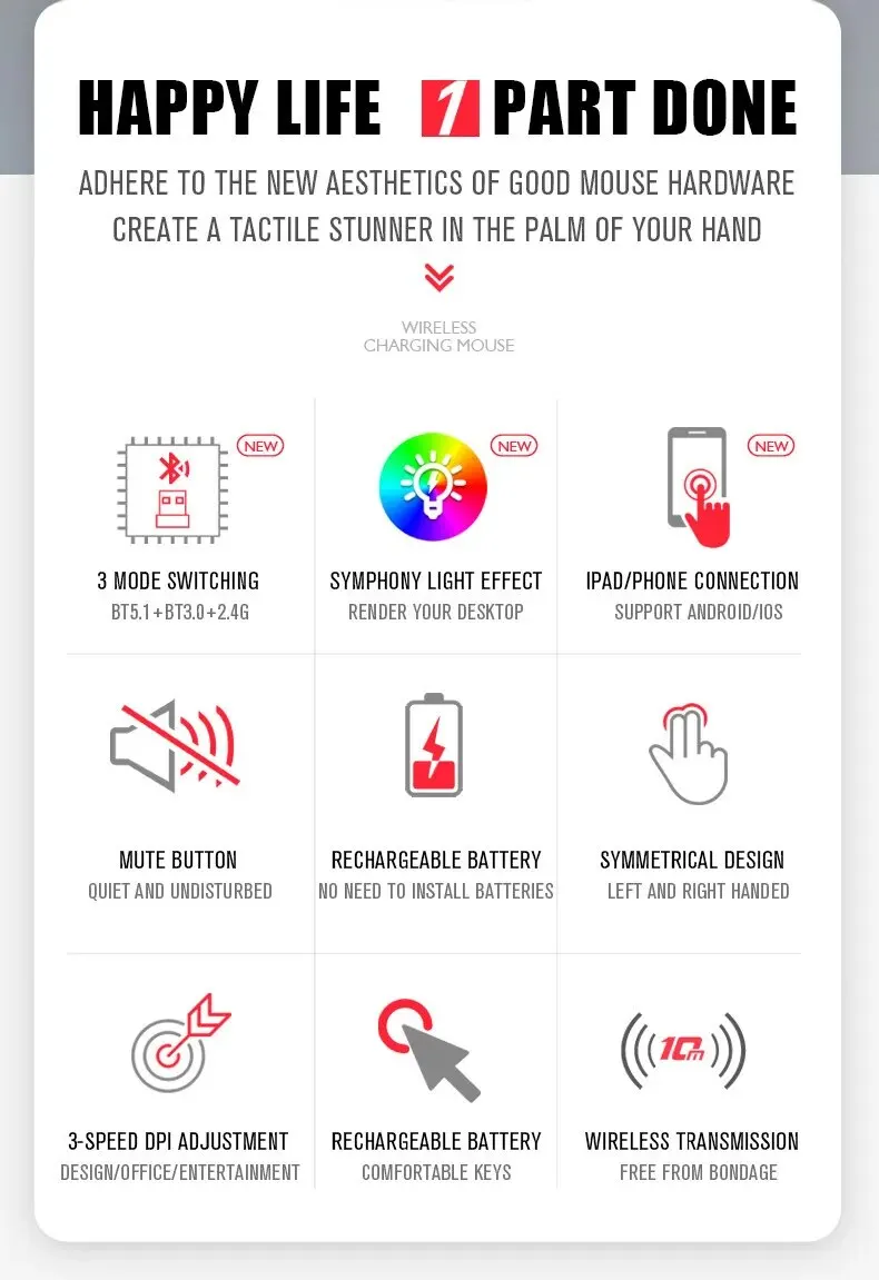 ? 충전식:배터리를 지속적으로 교체 할 필요가 없으며 장시간 사용하기 위해 마우스를 충전하면됩니다.