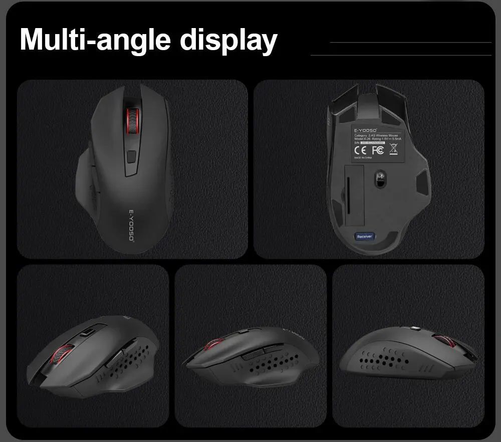 땀 방지 및 인체 공학적 디자인: E-YOOSO 마우스는 미끄럼 방지 및 땀 방지 사용자 정의 소재, 편안한 윤곽선 모양으로 제작 마우스의 양쪽에 손가락이 얹혀 있으면 추가 지원이 제공되며 모든 손가락이 오랫동안 편안하게 잡을 수 있습니다. 또한 앞으로 및 뒤로 버튼을 가지고, 웹 서핑을보다 효율적으로, 50,000,000 개 이상의 키 입력을위한 완벽한 성능을 확인하십시오!