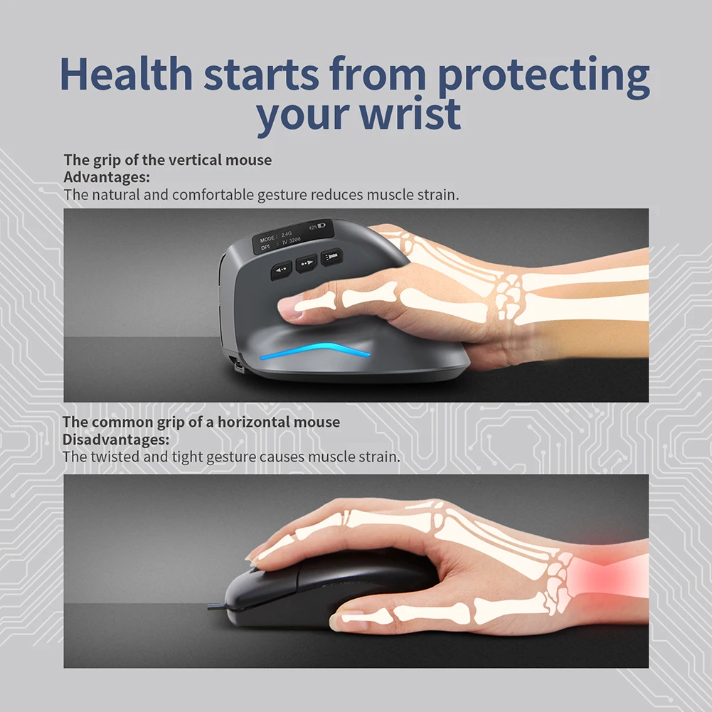 F-26C 수직 마우스 2.4G 무선 컴퓨터 게임용 마우스 인체 공학적 3200DPI 데스크탑 Upright 마우스 8 버튼 PC 노트북 사무실 가정용 충전식