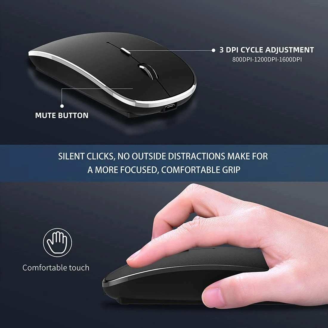 충전식 무선 마우스-내장 내구성 450mAh 리튬 이온 충전식 배터리 USB 충전, 배터리를 교체 할 필요가 없습니다. 2 시간 충전, 60 일 정도 사용할 수 있습니다.