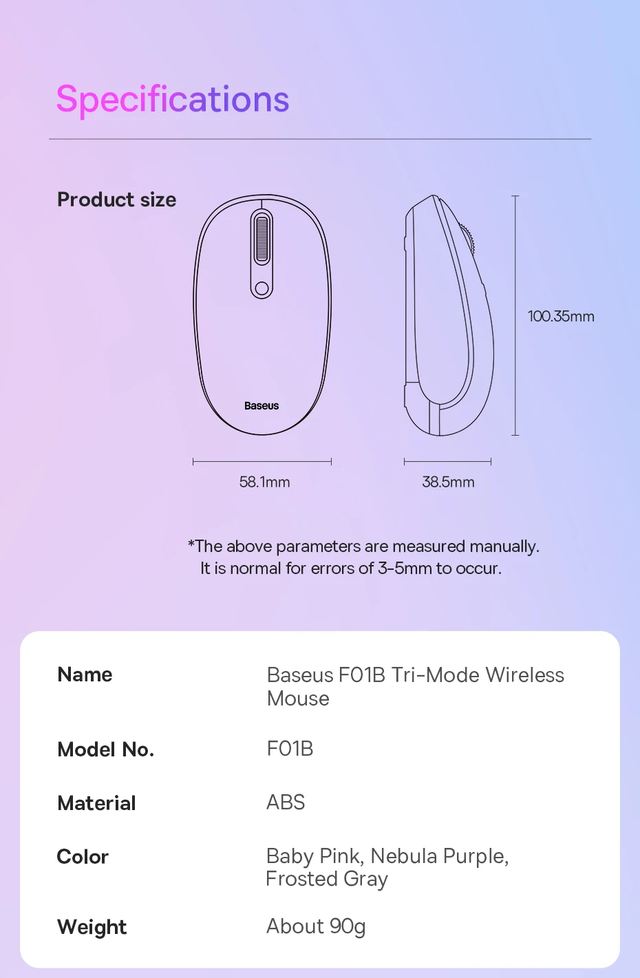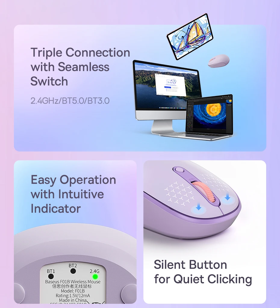 마우스 손목이편한 무선 Baseus 24G 블루투스 50 30 F01 사무실 용 마우스패드 PC 태블릿 노트북 컴퓨터용