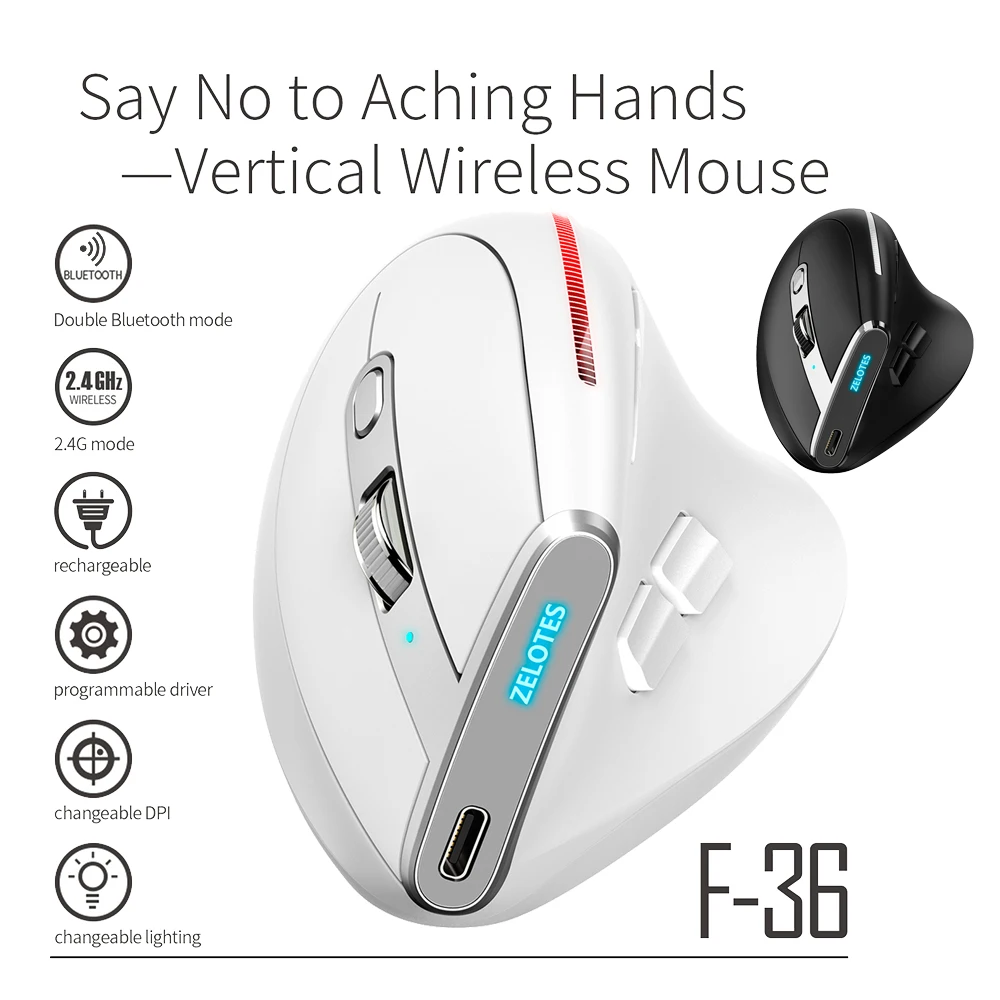 F-36 2.4G 블루투스 호환 마우스 2400 DPI 8 버튼 무선 충전식 마우스 컴퓨터 노트북 데스크탑 전문가