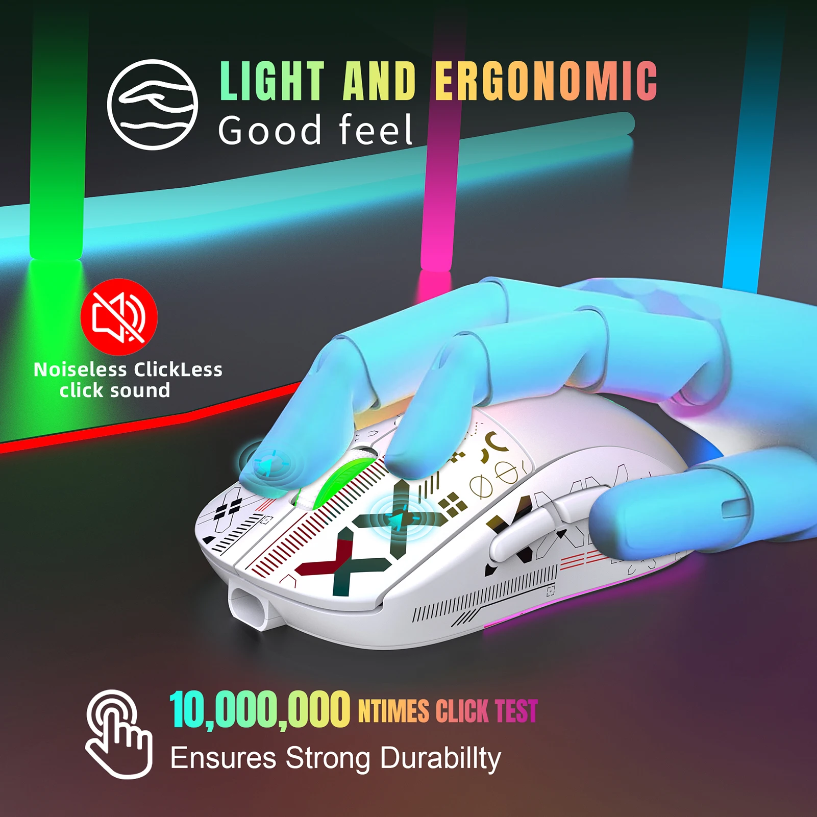 마우스 손목이편한 무선 Hxsj T90 24G 기계식 RGB 용 공학적 디자인 1 천만 키 스트로크 평생 3600DPI 조