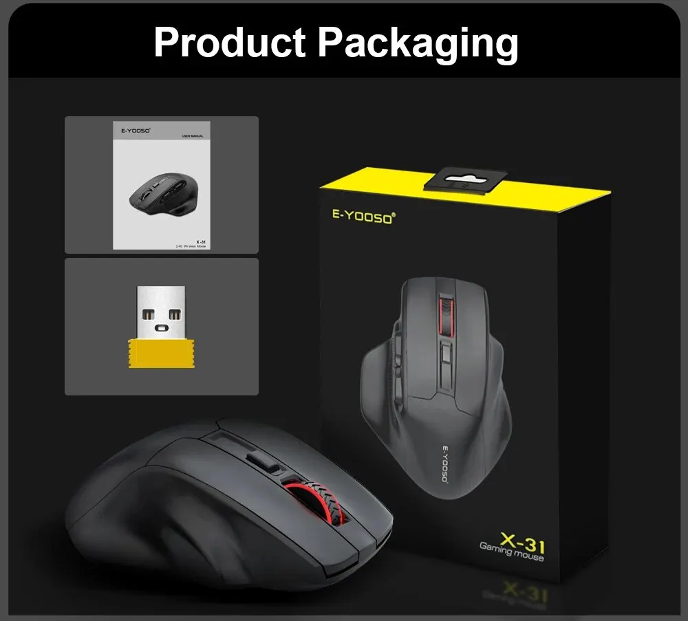 ? 편안한 그립을위한 큰 크기:E-YOOSO X-31 USB 2.4G 무선 게임용 대형 마우스는 손이 큰 경우에도 손에 편안하게 맞도록 설계되었습니다.