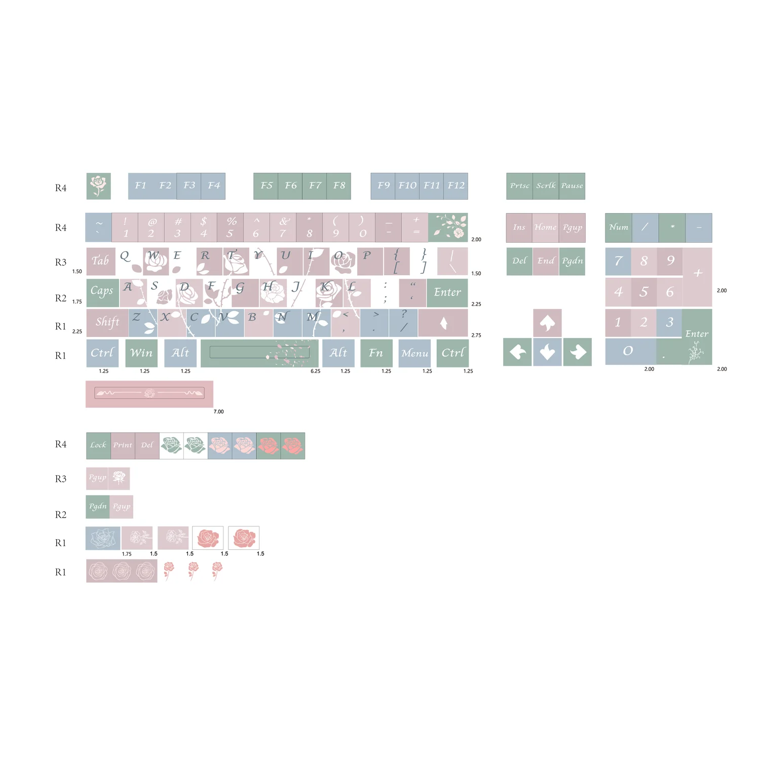 * 이 키 캡 세트에는 7u sapce 키가 있습니다!