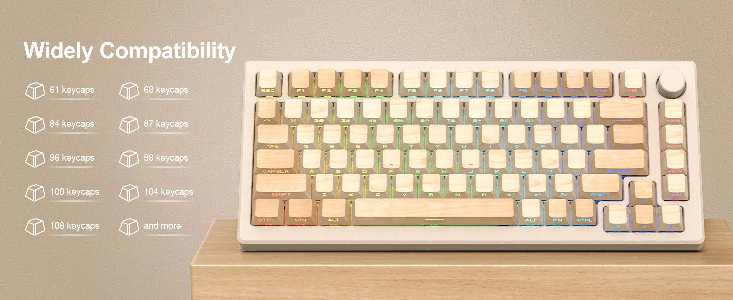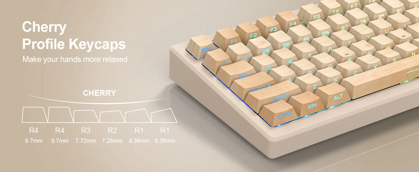 【체리 프로필 키캡】 최고의 타이핑 경험을 위해 설계된 클래식 체리 프로필로 설계된 키 캡. 직장이나 게임에서 오랫동안 사용하더라도 피곤하지 않습니다.