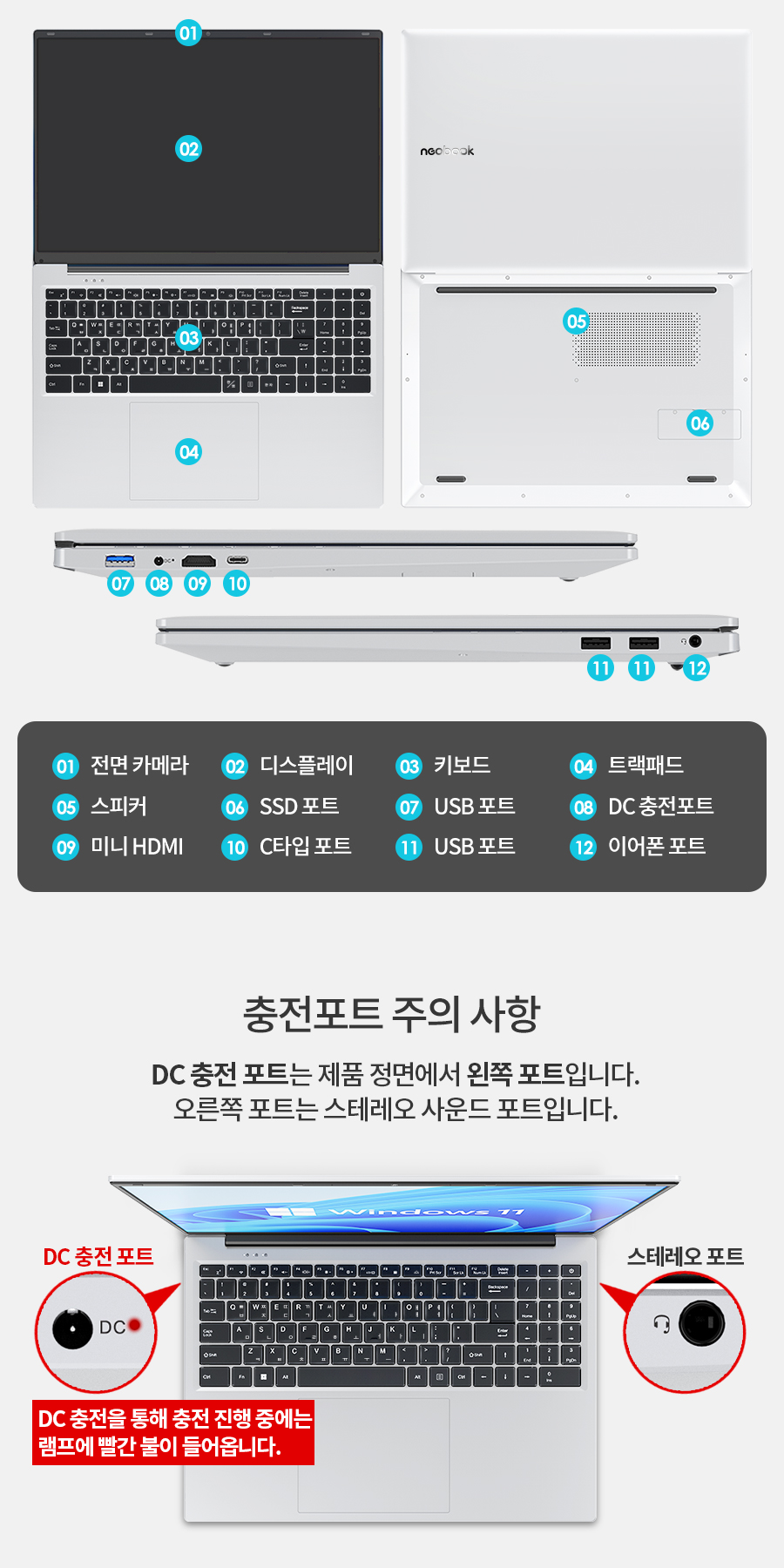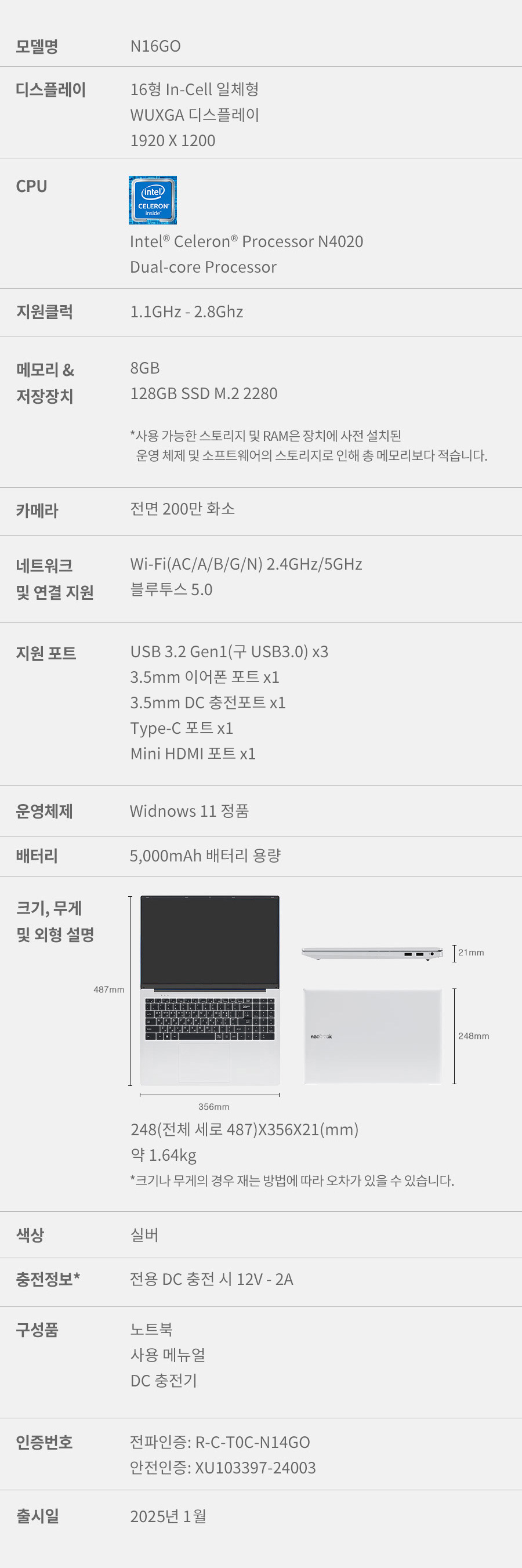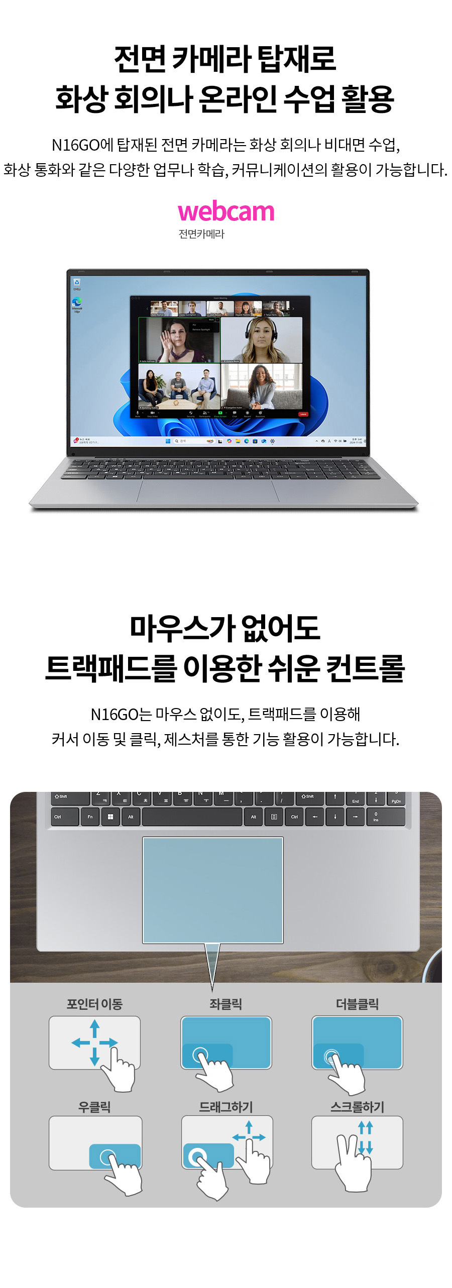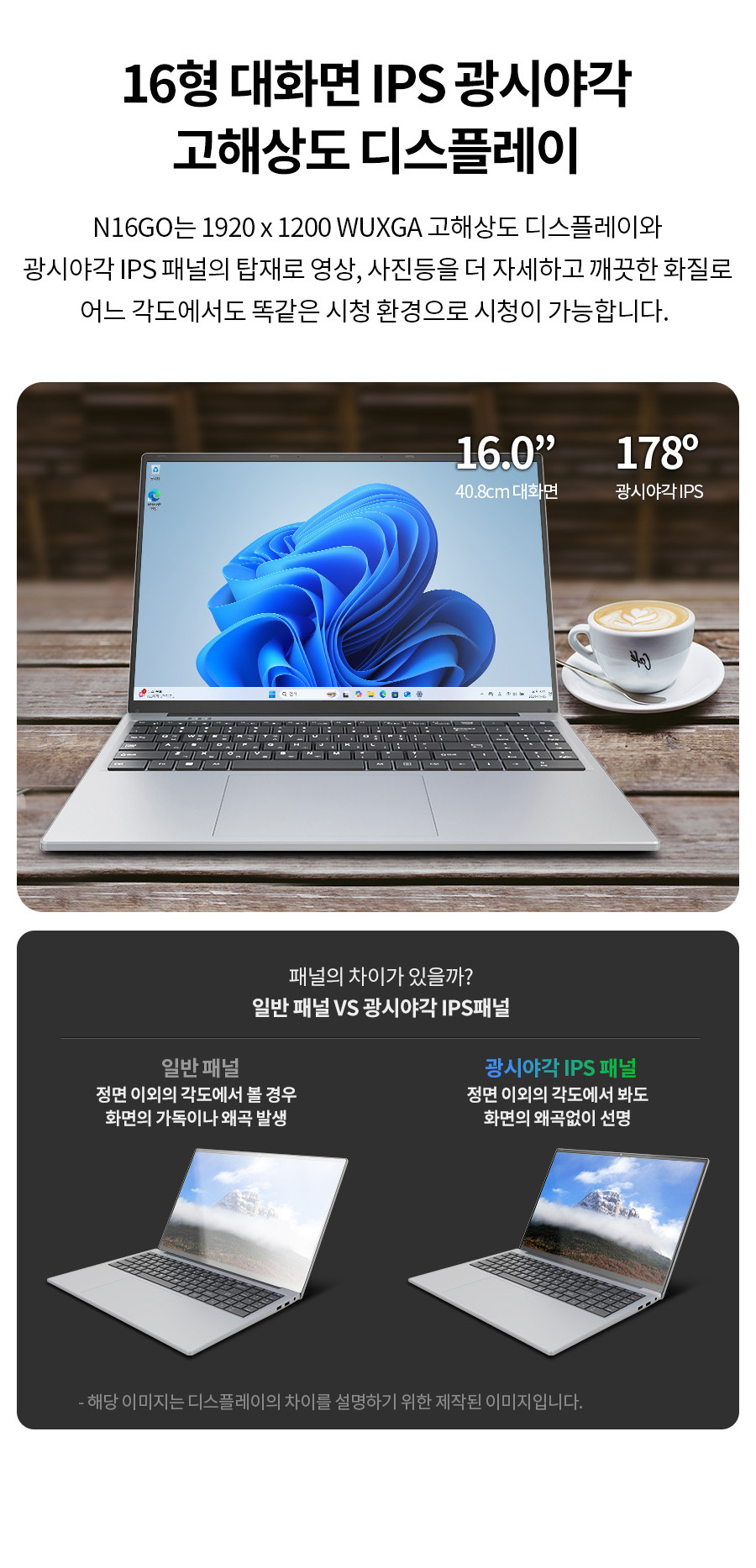 네오북 NEOBOOK N16GO(실버) 16형 대화면 디스플레이 윈도우 11 탑재 8GB 128GB SSD 노트북