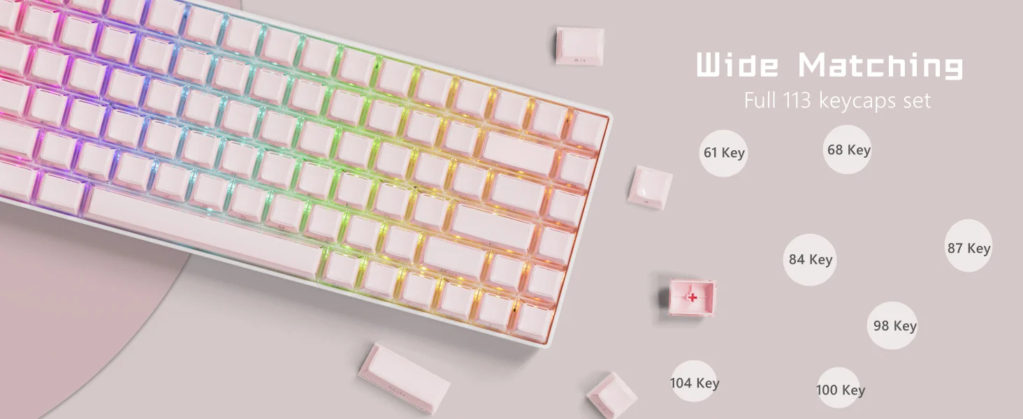 《 OEM 프로필 Keycaps 》 클래식 OEM 프로필을 일치시켜 더 편안한 타이핑 경험을 제공합니다. 백라이트/비 백라이트 기계식 키보드를 위해 설계되었으며 설치가 쉽습니다.