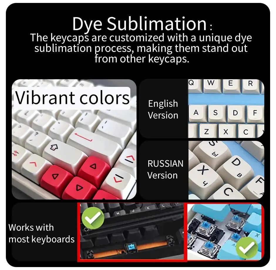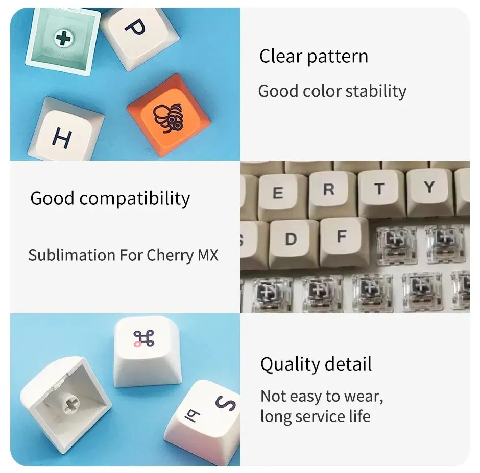 ? 염료 승화 기술:키 캡은 염료 승화 기술을 사용하여 만들어 지므로 색상이 쉽게 퇴색하거나 얼룩지지 않습니다.