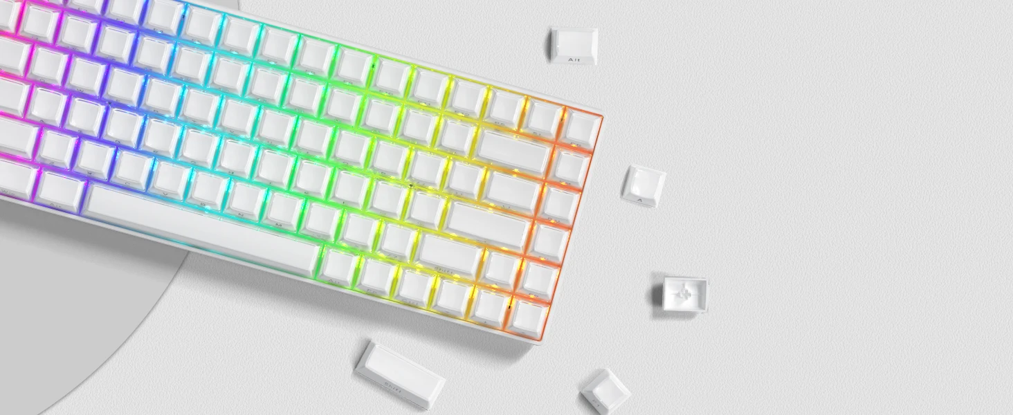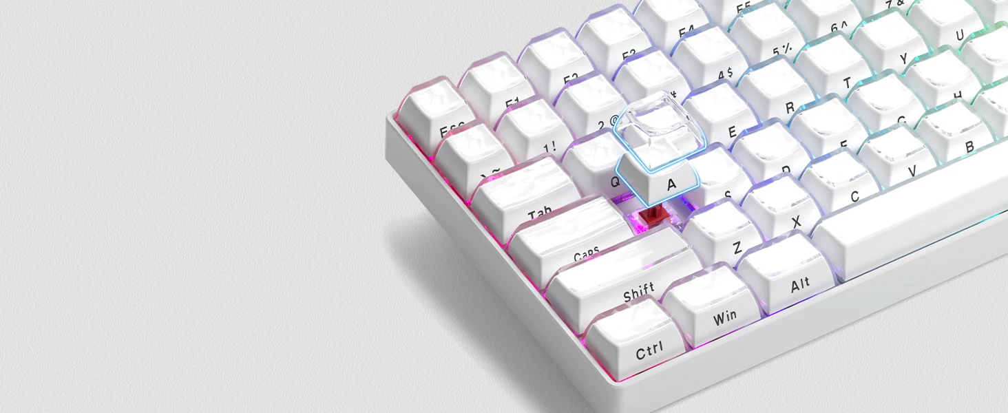《 컬러 투명 키 캡 》 이 키 캡은 고품질 PC 소재와 고품질 ABS 소재로 만들어졌습니다. 이중 레이어로 쌓여 있으며 RGB 조명이 희미하게 표시되어 키보드의 분위기를 높이고 키보드를 독특하게 만듭니다. Letter 측면 조각 스타일은 기계식 키보드의 단순성을 더 잘 보여줍니다.