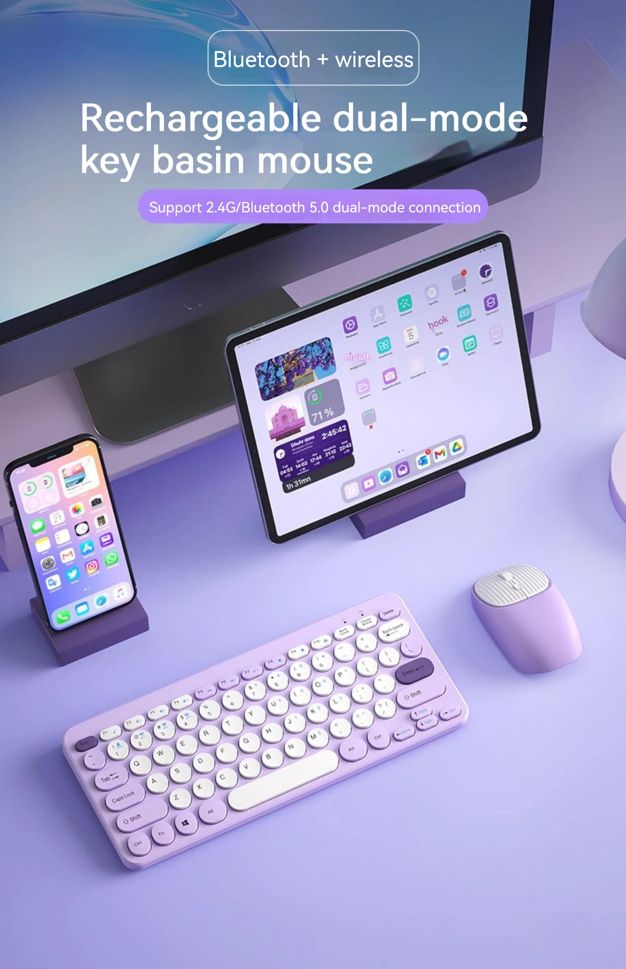 컬러: 퍼플 [블루투스 무선] 키보드와 마우스 세트