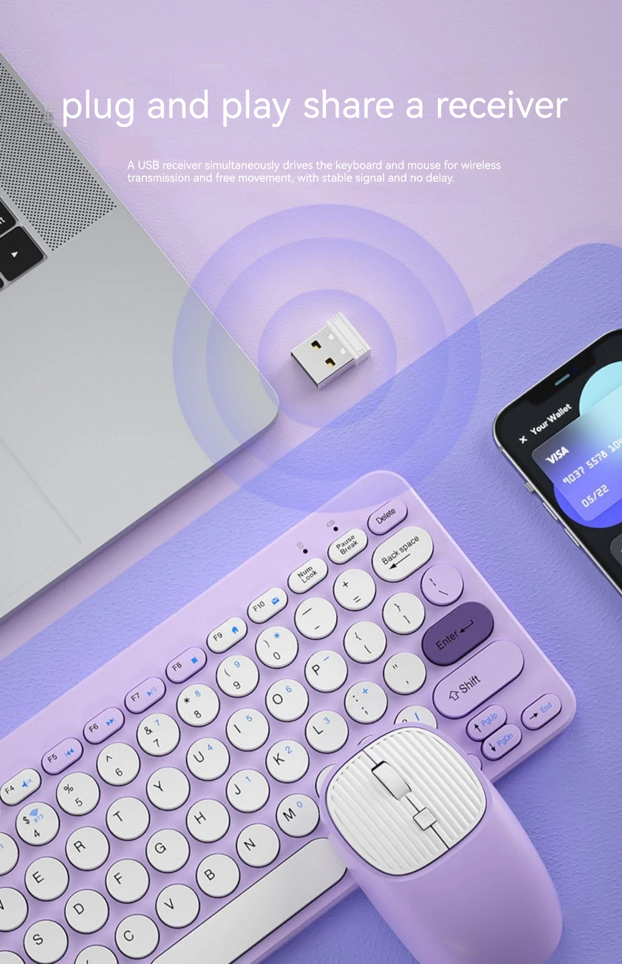 색상: 디지털 영역 [Bluetooth 무선] 키보드 및 마우스 세트가있는 자주색