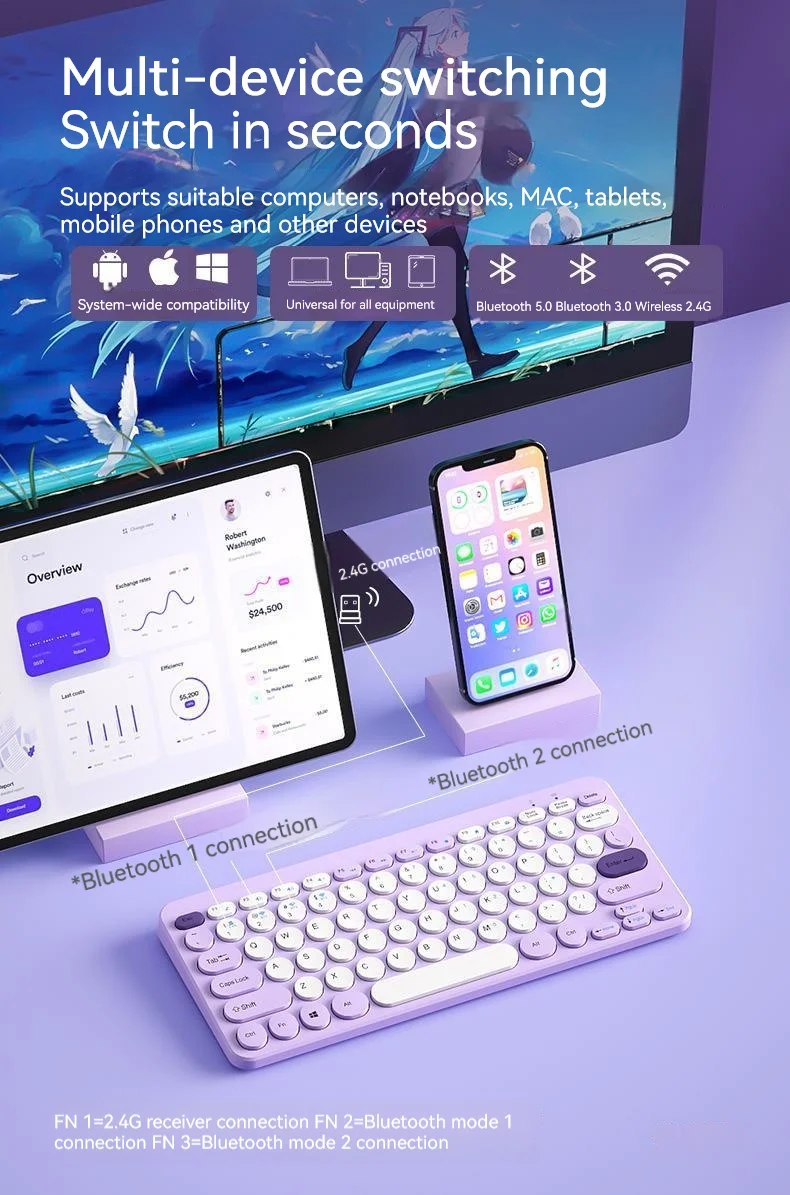 컬러: 퍼플 [블루투스 무선] 싱글 키보드