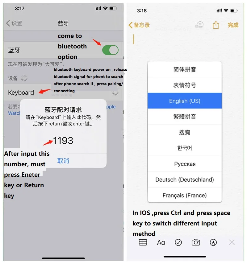 1. Windows 컴퓨터, 스마트 TV 박스 용 iPad IOS Android 태블릿 휴대 전화 범용 블루투스 무선 키보드