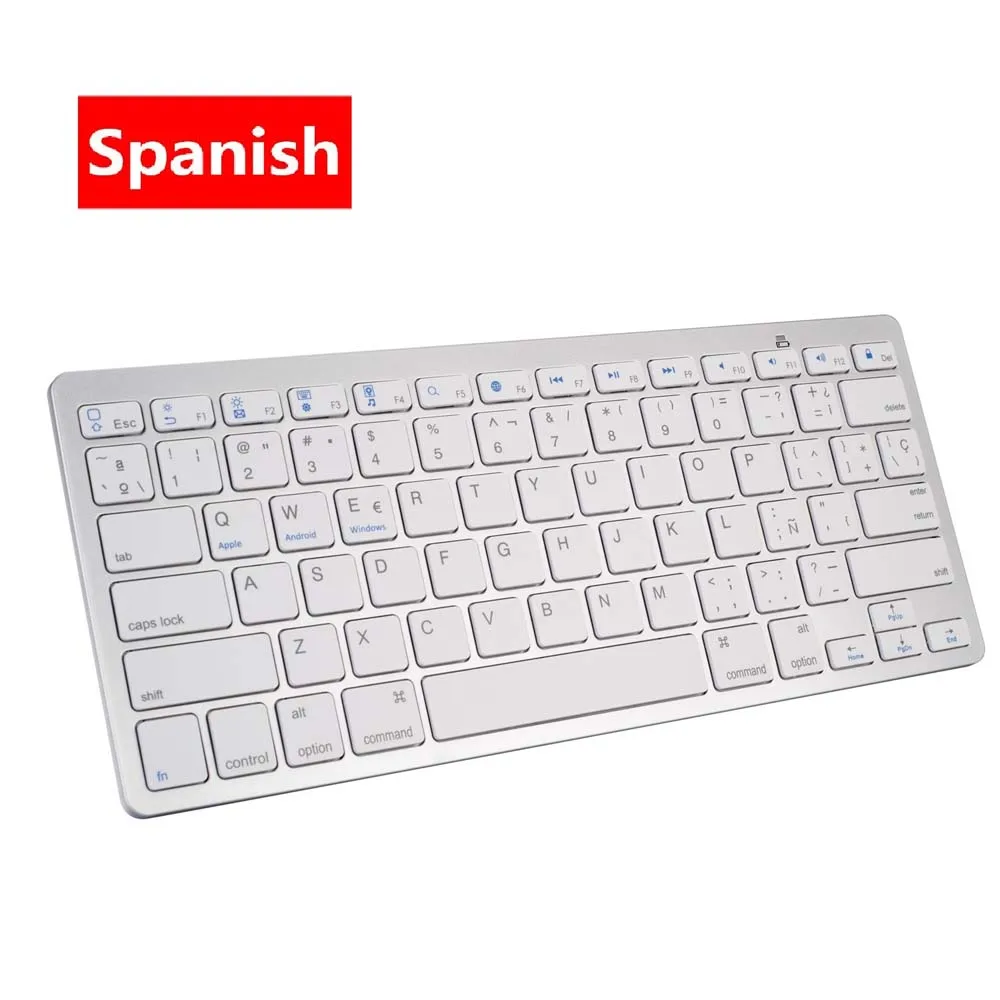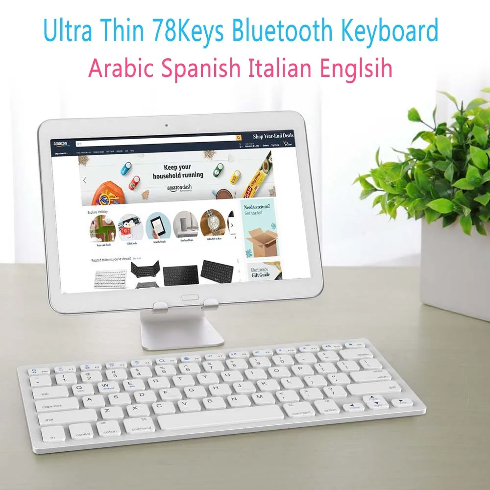 슬림 78 키 블루투스 키보드 iPad 용 아랍어 스페인어 이탈리아어 영어 무선 키보드 IOS 블루투스 어댑터가없는 Windows 컴퓨터 용 Android 태블릿 휴대 전화