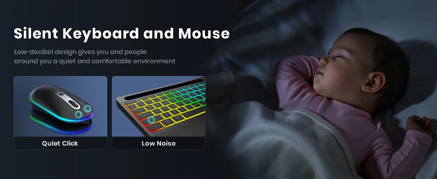 【초저소음 무선 키보드 및 마우스】 초박형 무선 키보드의 조용한 구조 디자인의 이점, 키보드를 두드리는 경우 노크 노이즈의 95% 이상을 효과적으로 줄일 수 있습니다. 무선 마우스는 조용한 기계식 마이크로 무브먼트 디자인을 사용하여 성가신 노크 소리없이 마우스 클릭 소리를 크게 줄이며 아무도 방해하지 않습니다.