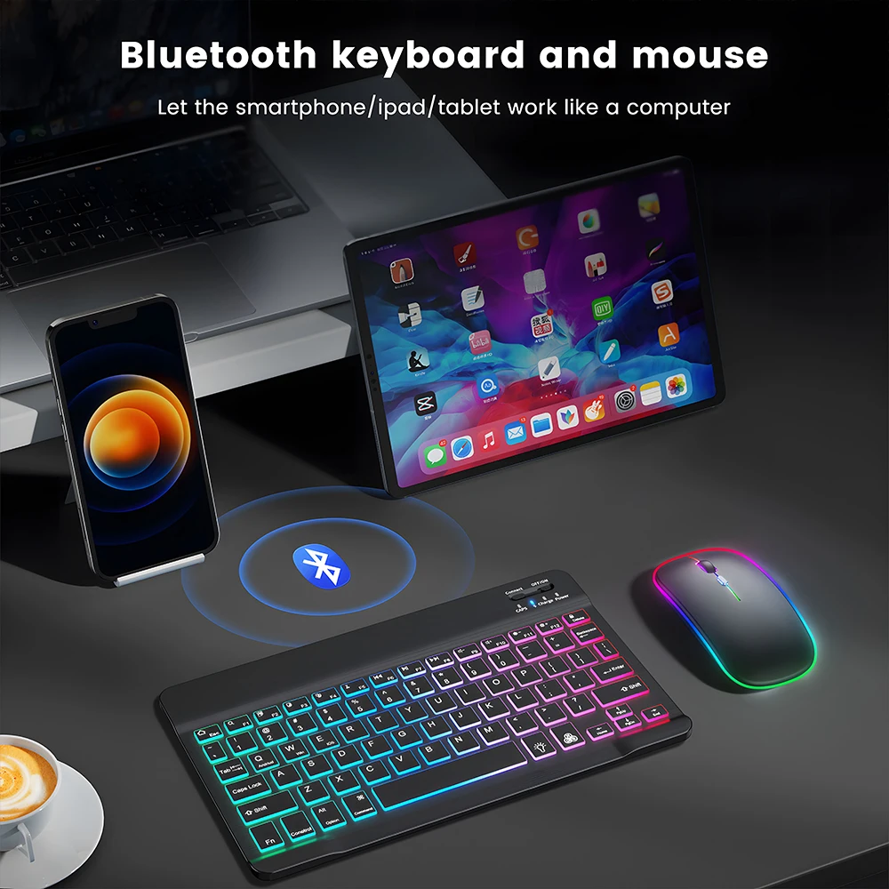 블루투스 키보드 및 마우스로 스마트 폰/iPad/태블릿이 컴퓨터처럼 작동합니다.