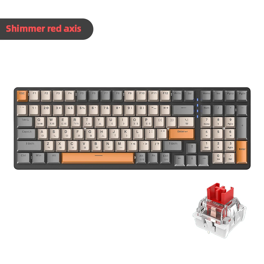 TYPE-C 케이블을 키보드에 연결하고 USB 헤드를 컴퓨터의 U 포트에 연결 한 다음 FN + 5 키보드를 눌러 밝은 흰색 조명 모드를 유선으로 사용하십시오. 빨간색 표시등은 충전 중임을 나타냅니다.