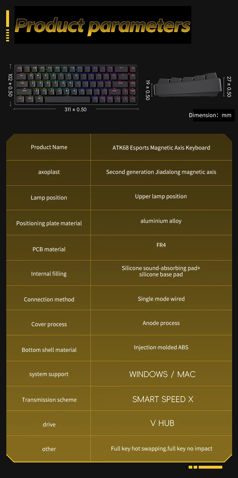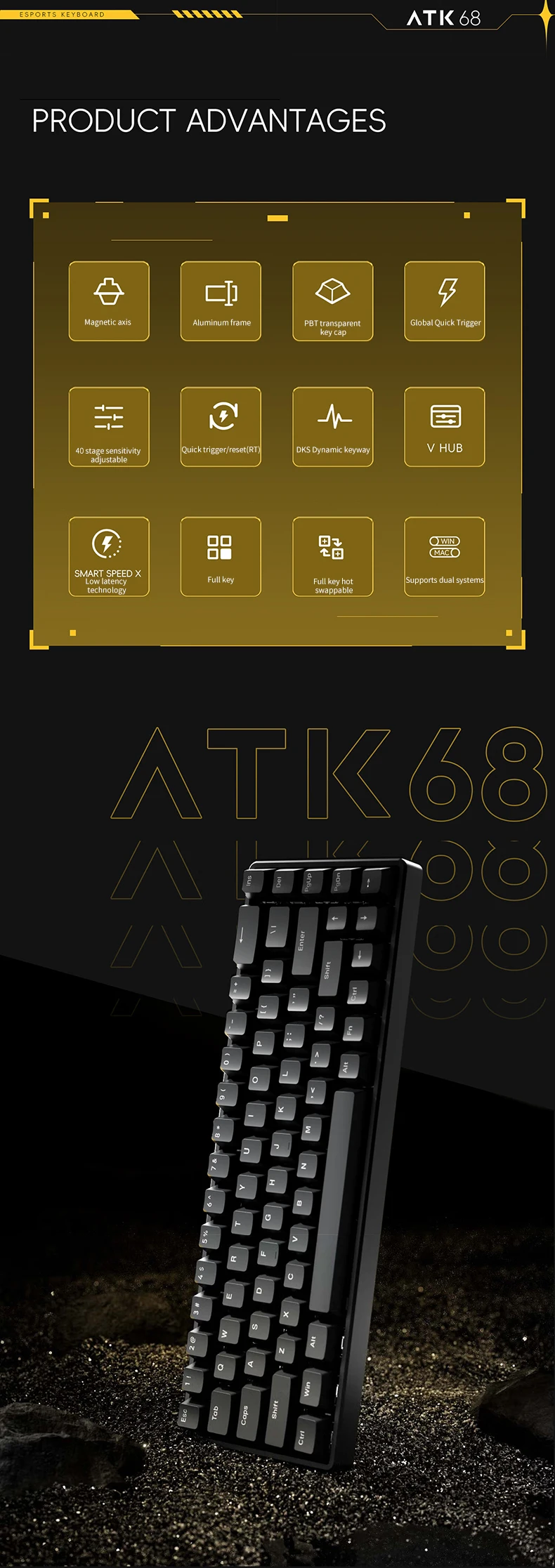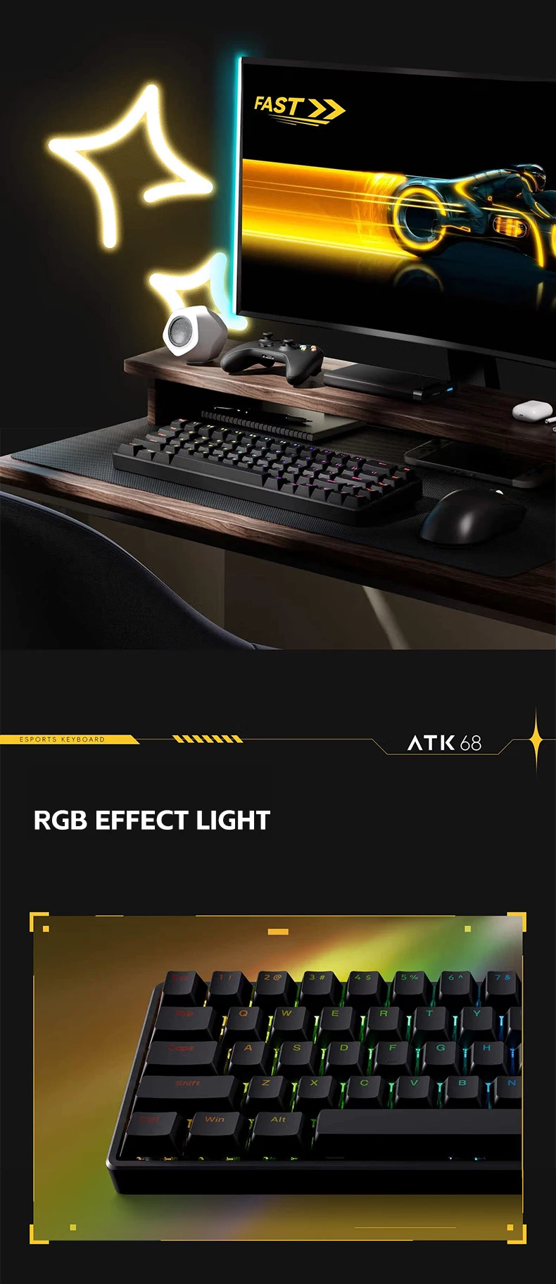 블루투스 키보드 태블릿 무선 ATK ATK68 마그네틱 스위치 기계식 용 합금 USB-C RGB 게이머 발로란트 FPS용