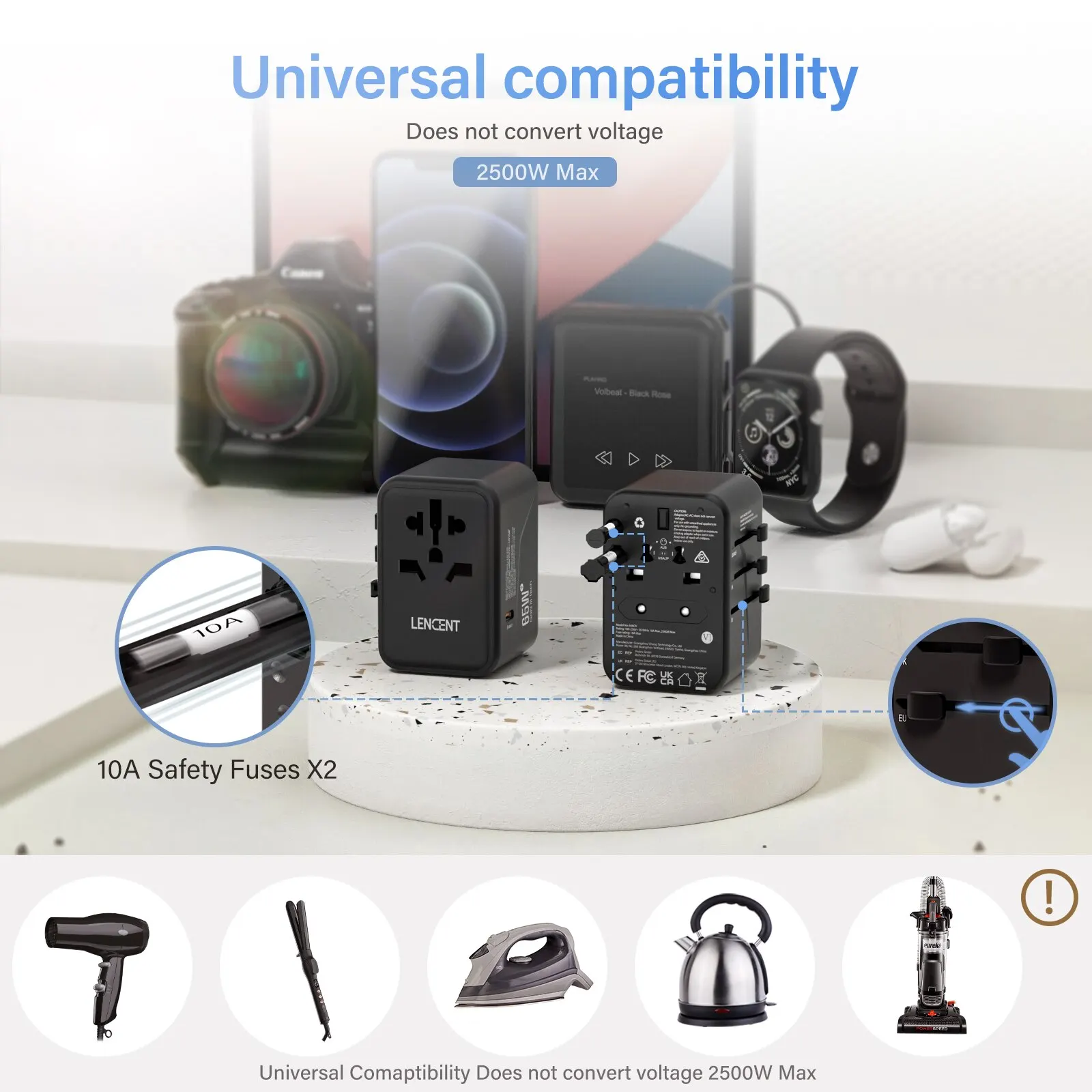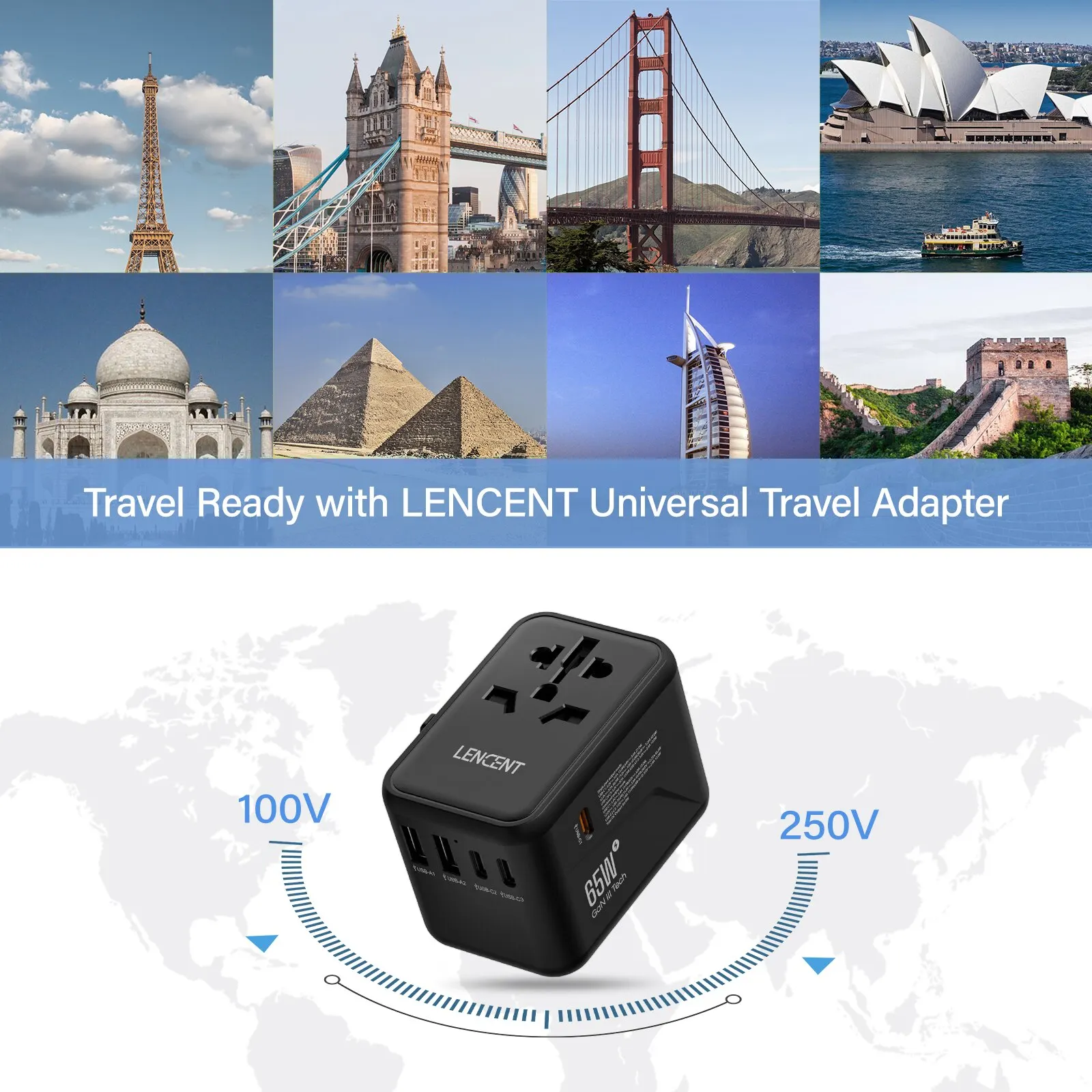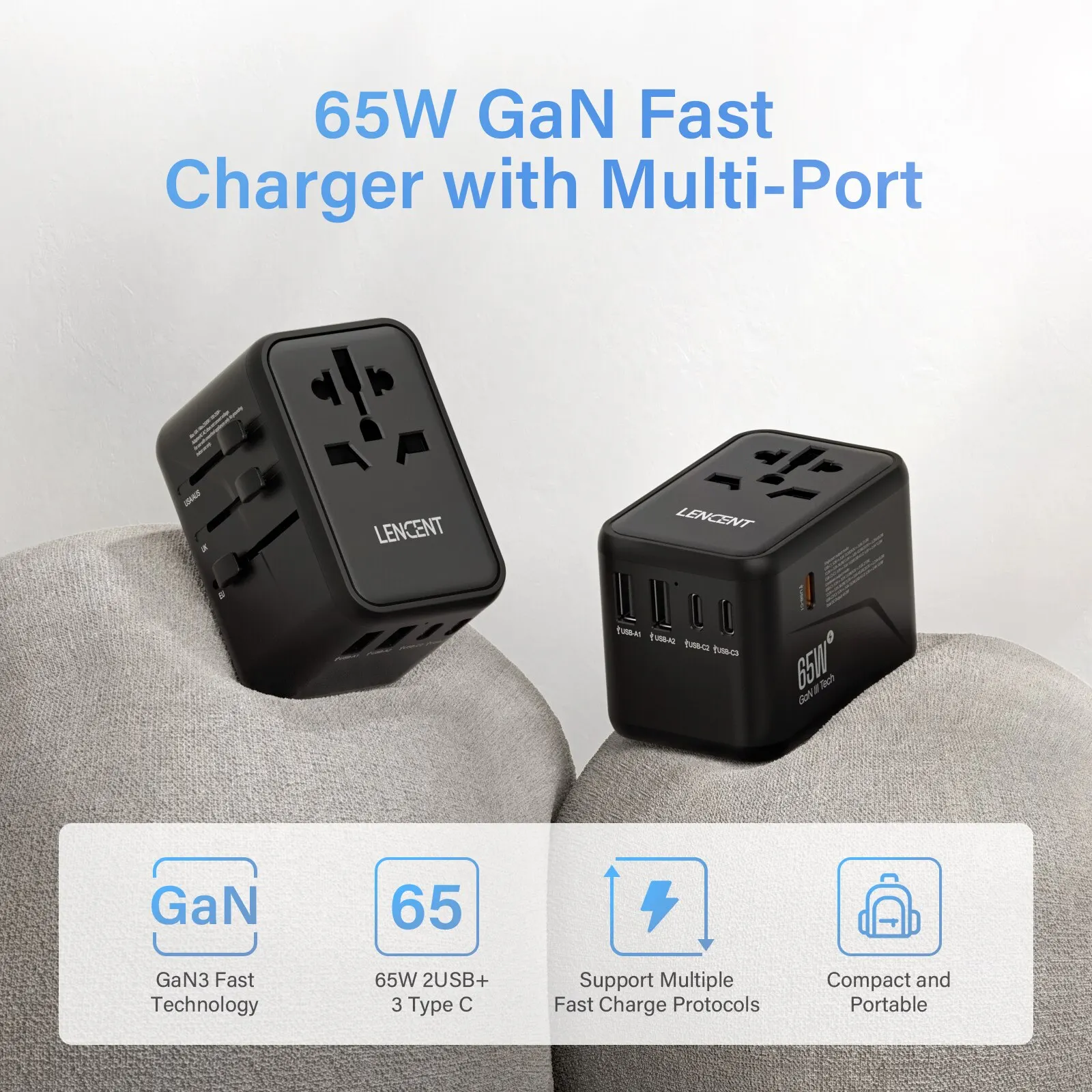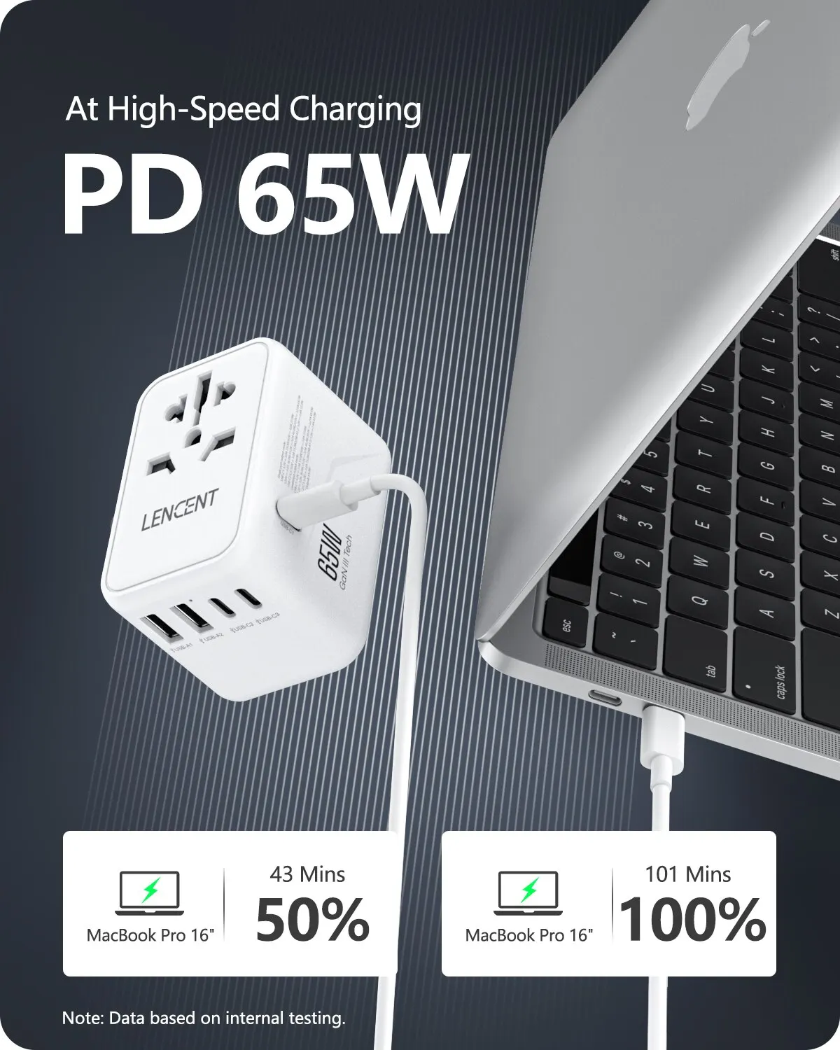 2 개의 USB 포트 및 3Type C 포트가있는 LENCENT 여행용 어댑터는 지능적으로 연결된 장치를 식별하고 최적의 충전 전류를 감지하고 전달하여 빠르고 안전한 충전을 보장합니다.