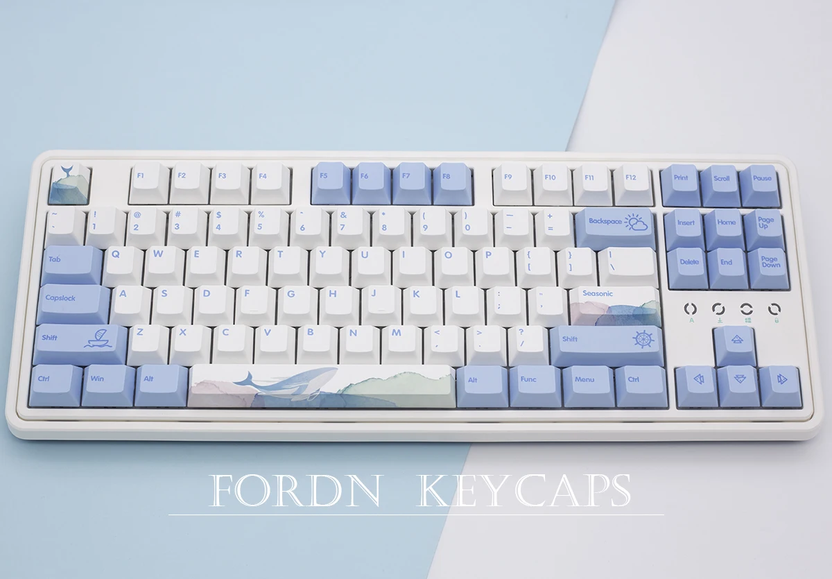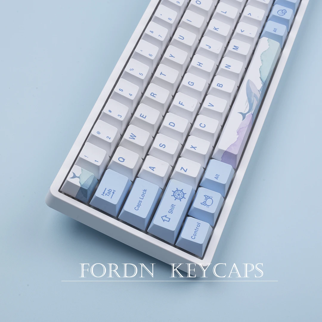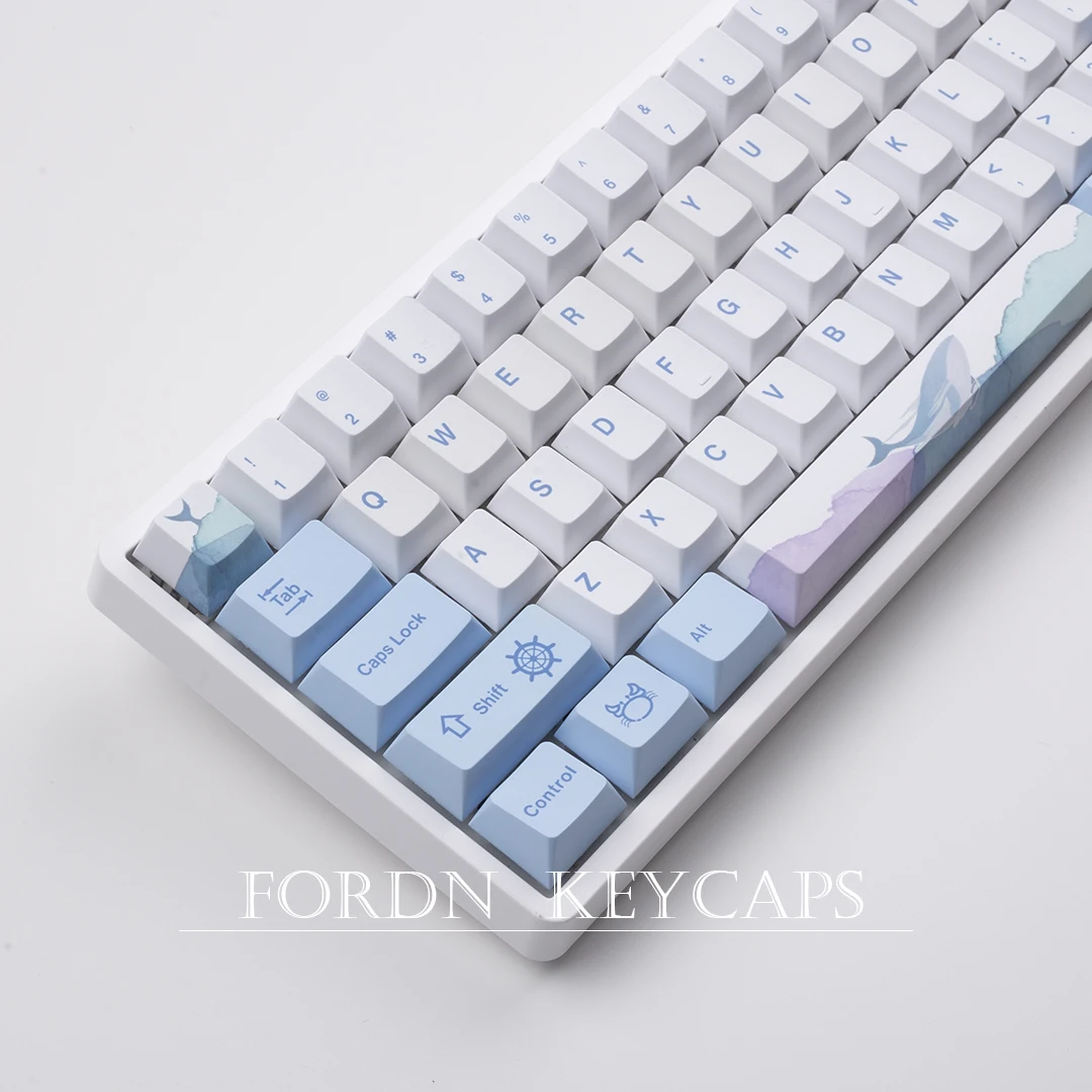129 Keys Ocean Whale Theme Cherry Profile PBT Keycaps For Mechanical keyboard DYE-Sublimation Blue White Gaming keycap custom