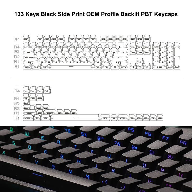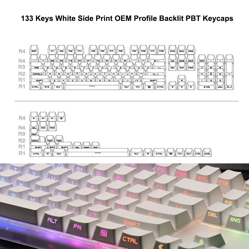 패키지 포함: 130-133 pcs 측면 조명 더블 샷 키캡 키셋 + 풀러, 키보드 포함 없음
