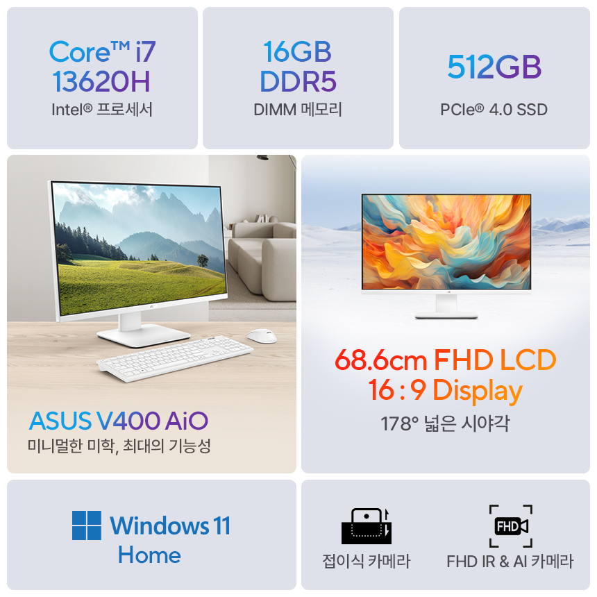 (현대Hmall)ASUS V400 AiO V470VAK-WPE142W 27인치 올인원 PC 인텔 i7-13620H 16GB 512GB 윈도우 11홈